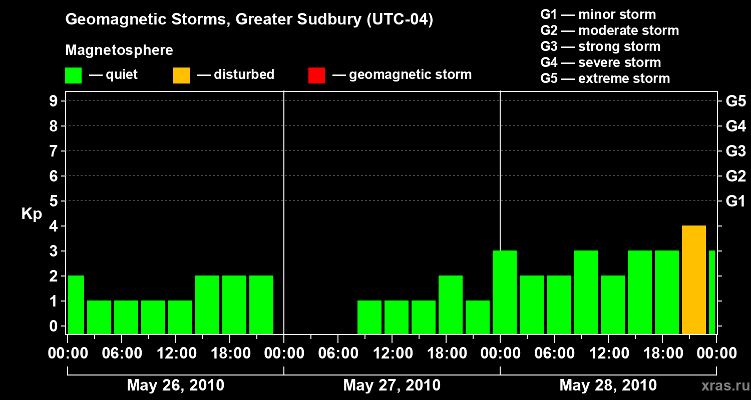 Geomagnetic storms in Greater Sudbury — May 28, 2010