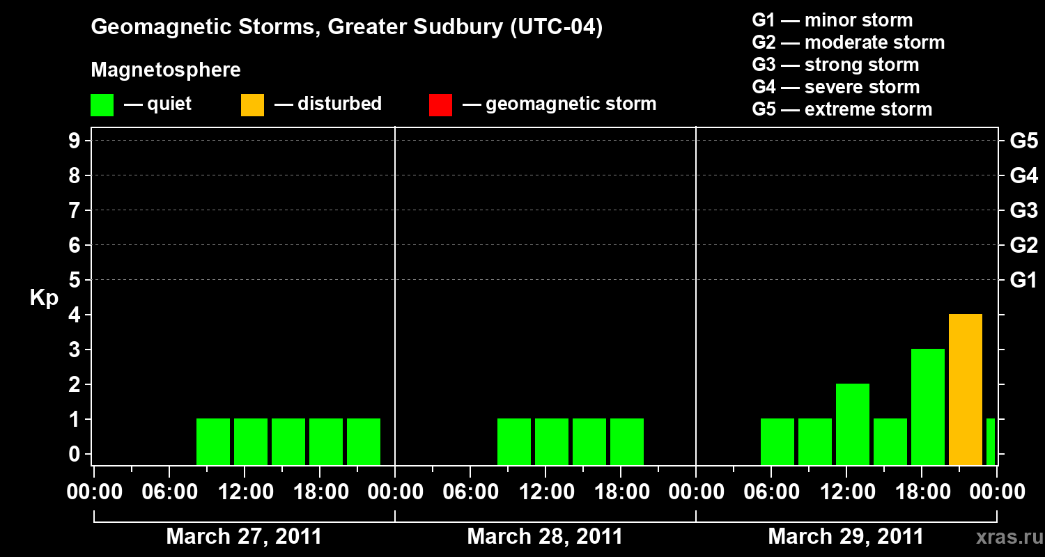 Geomagnetic storms in Greater Sudbury — Mar 29, 2011