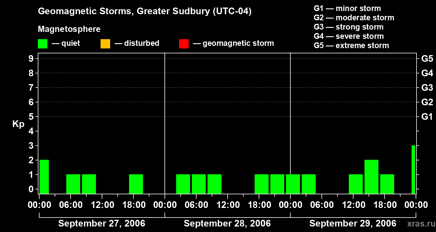Geomagnetic storms in Greater Sudbury on Sep 29, 2006