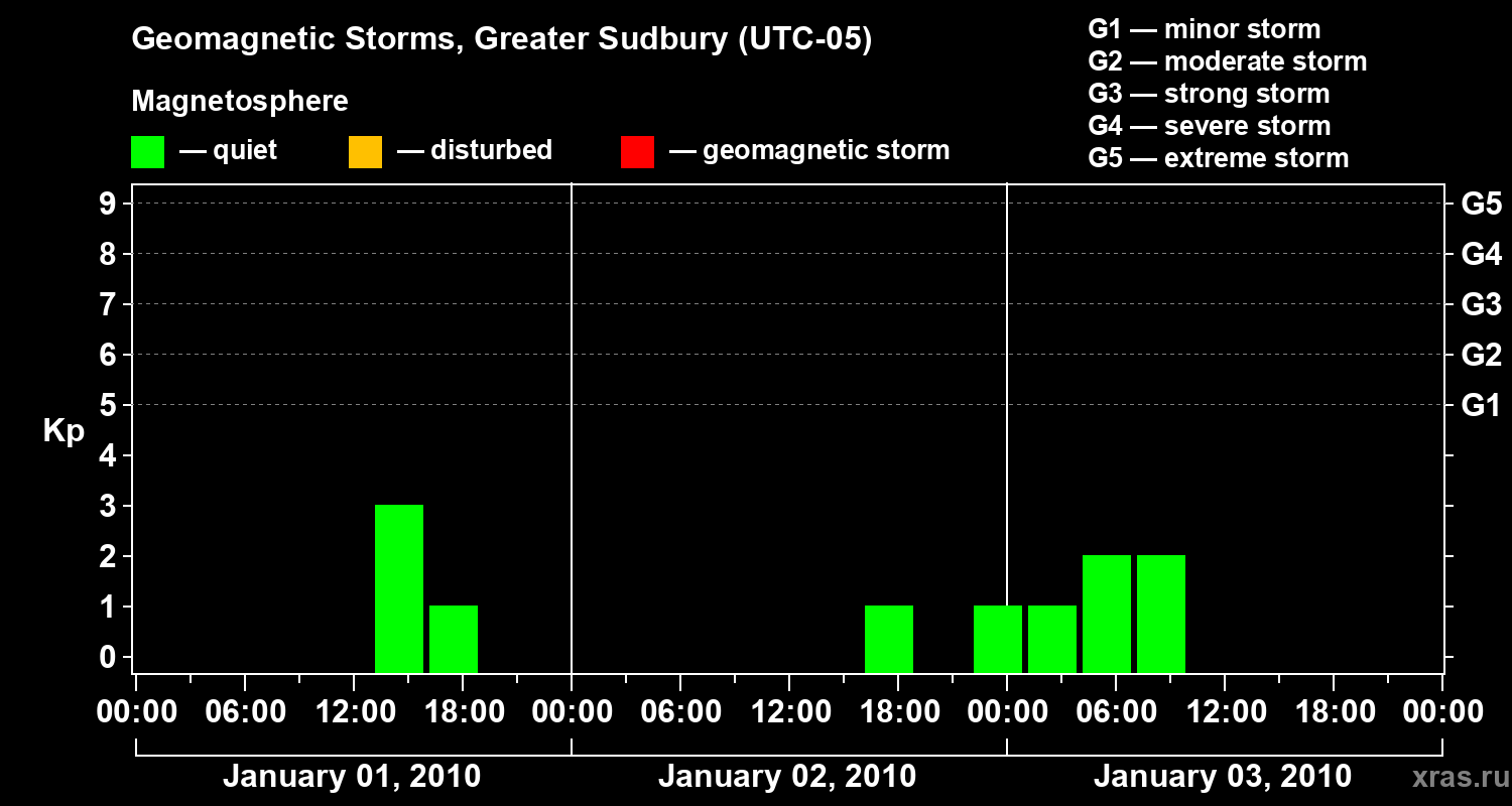 Geomagnetic storms in Greater Sudbury on Jan 03, 2010