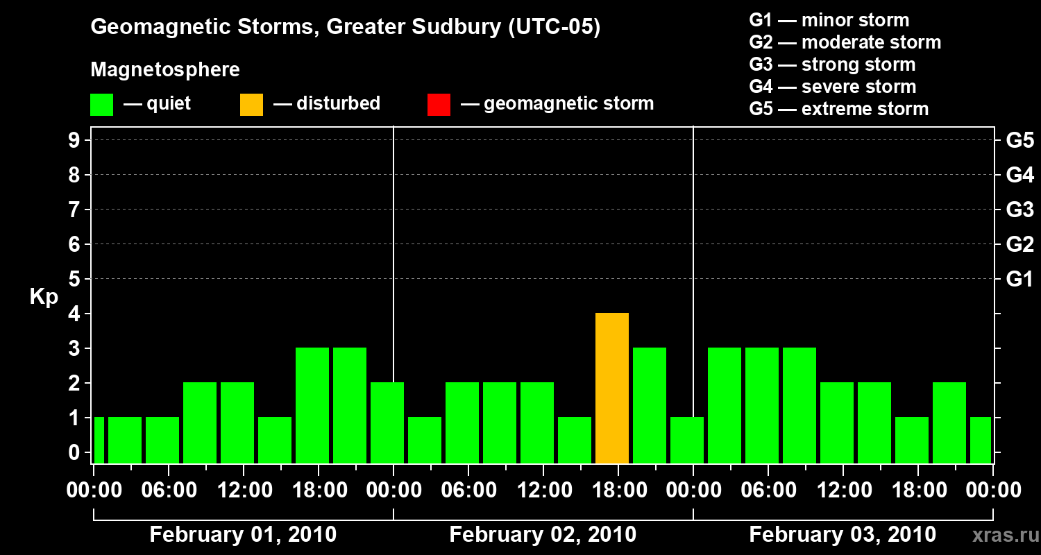 Geomagnetic storms in Greater Sudbury on Feb 03, 2010