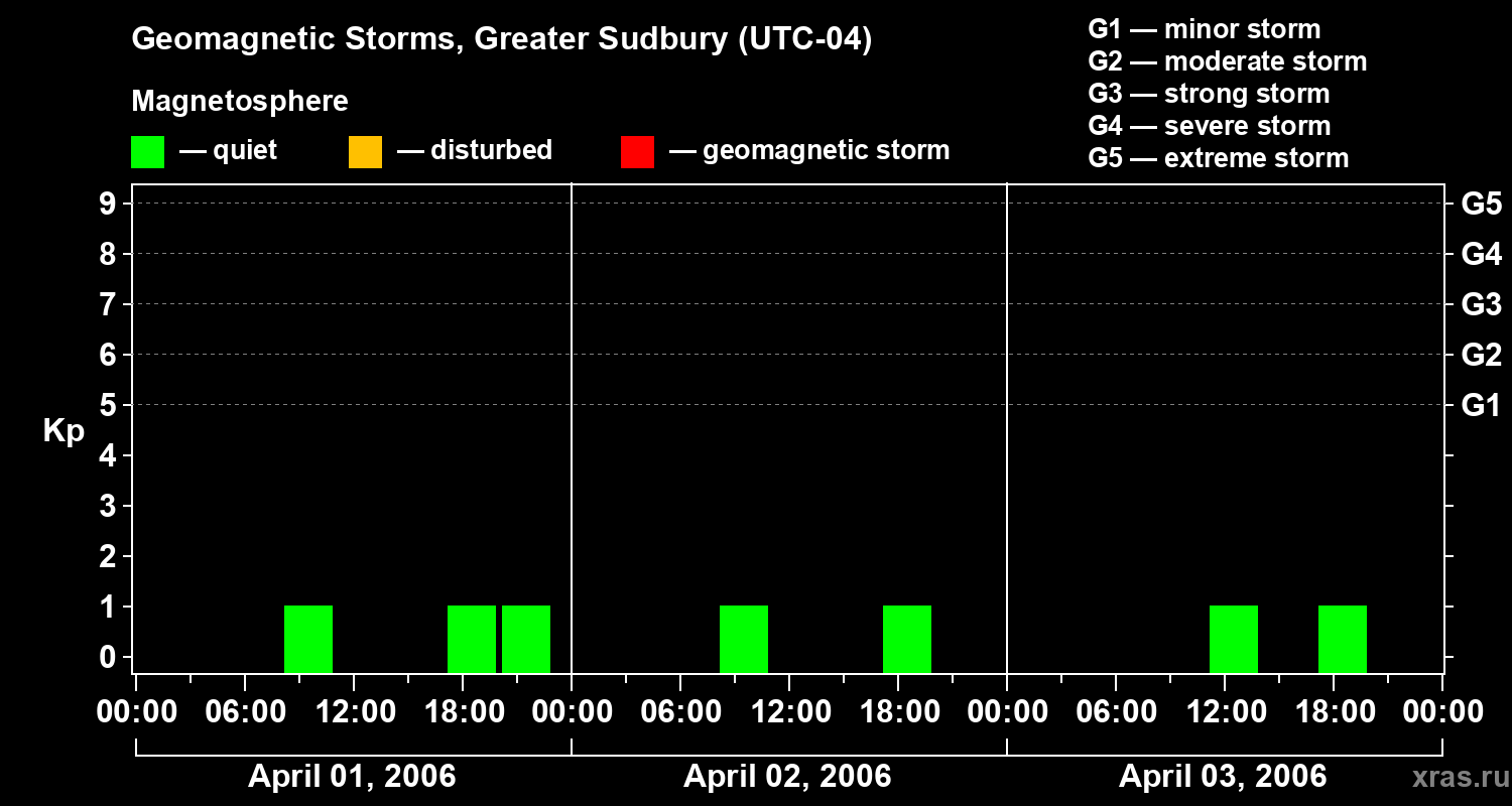 Geomagnetic storms in Greater Sudbury on Apr 03, 2006