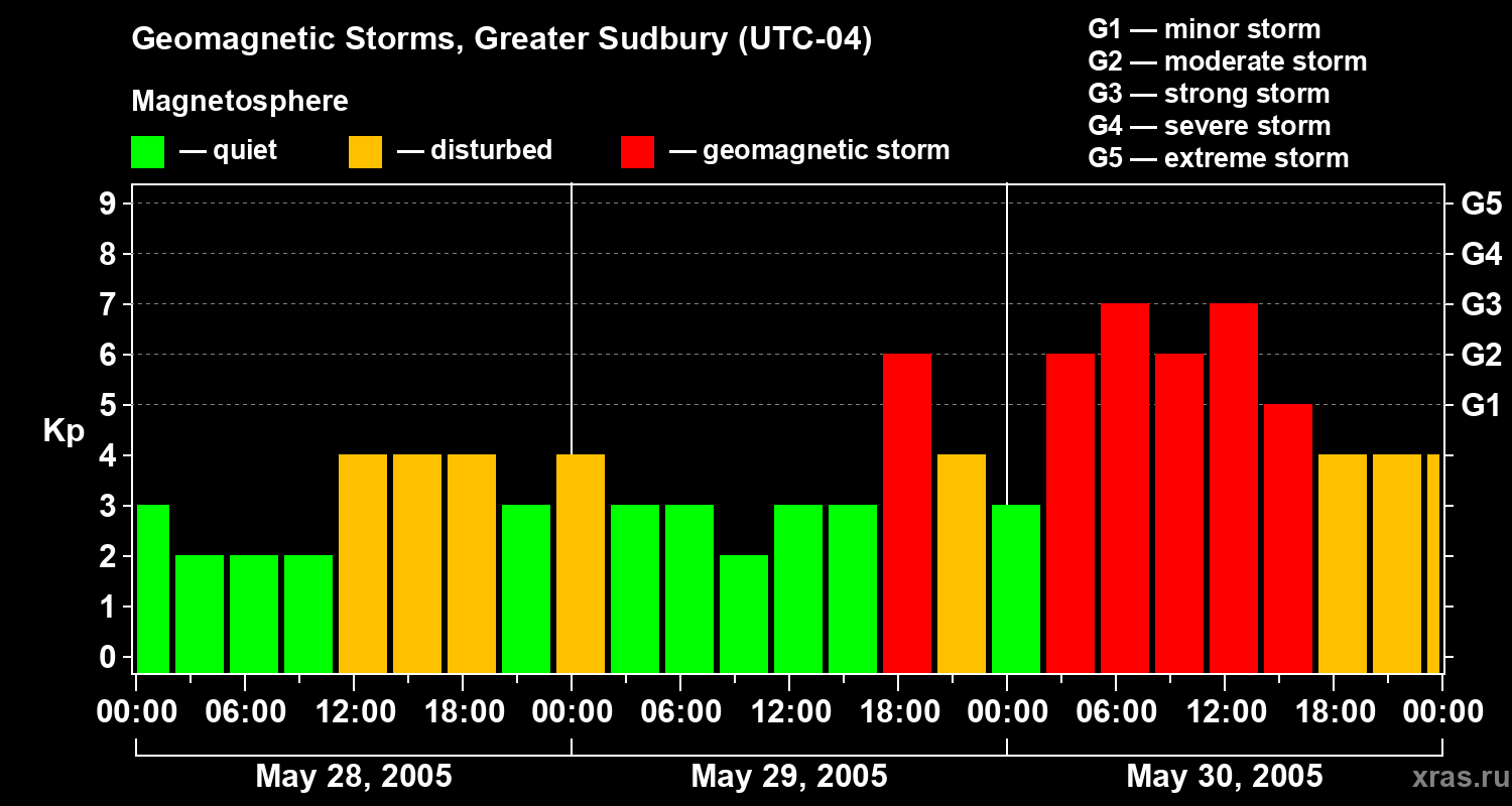 Geomagnetic storms in Greater Sudbury on May 30, 2005