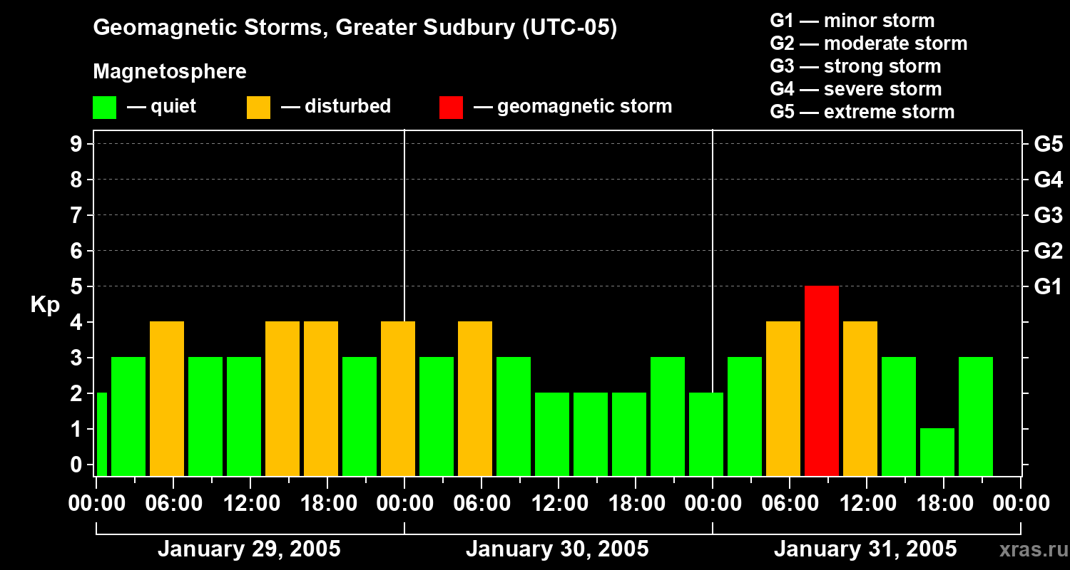 Geomagnetic storms in Greater Sudbury on Jan 31, 2005