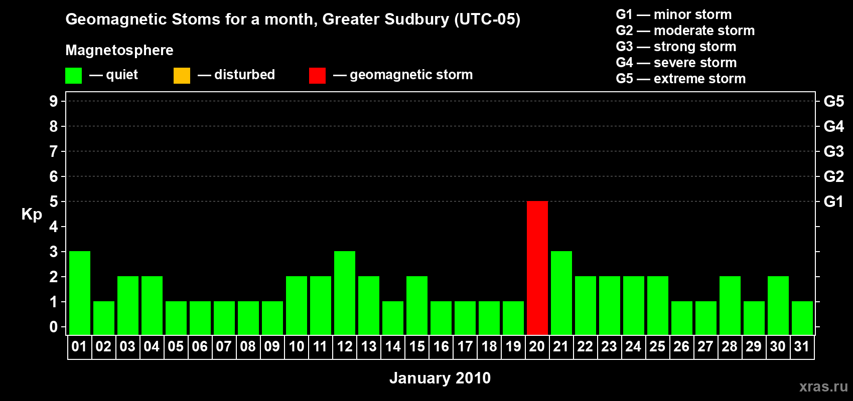 Geomagnetic storms in Greater Sudbury on Jan 31, 2010