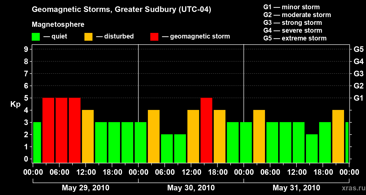 Geomagnetic storms in Greater Sudbury on May 31, 2010