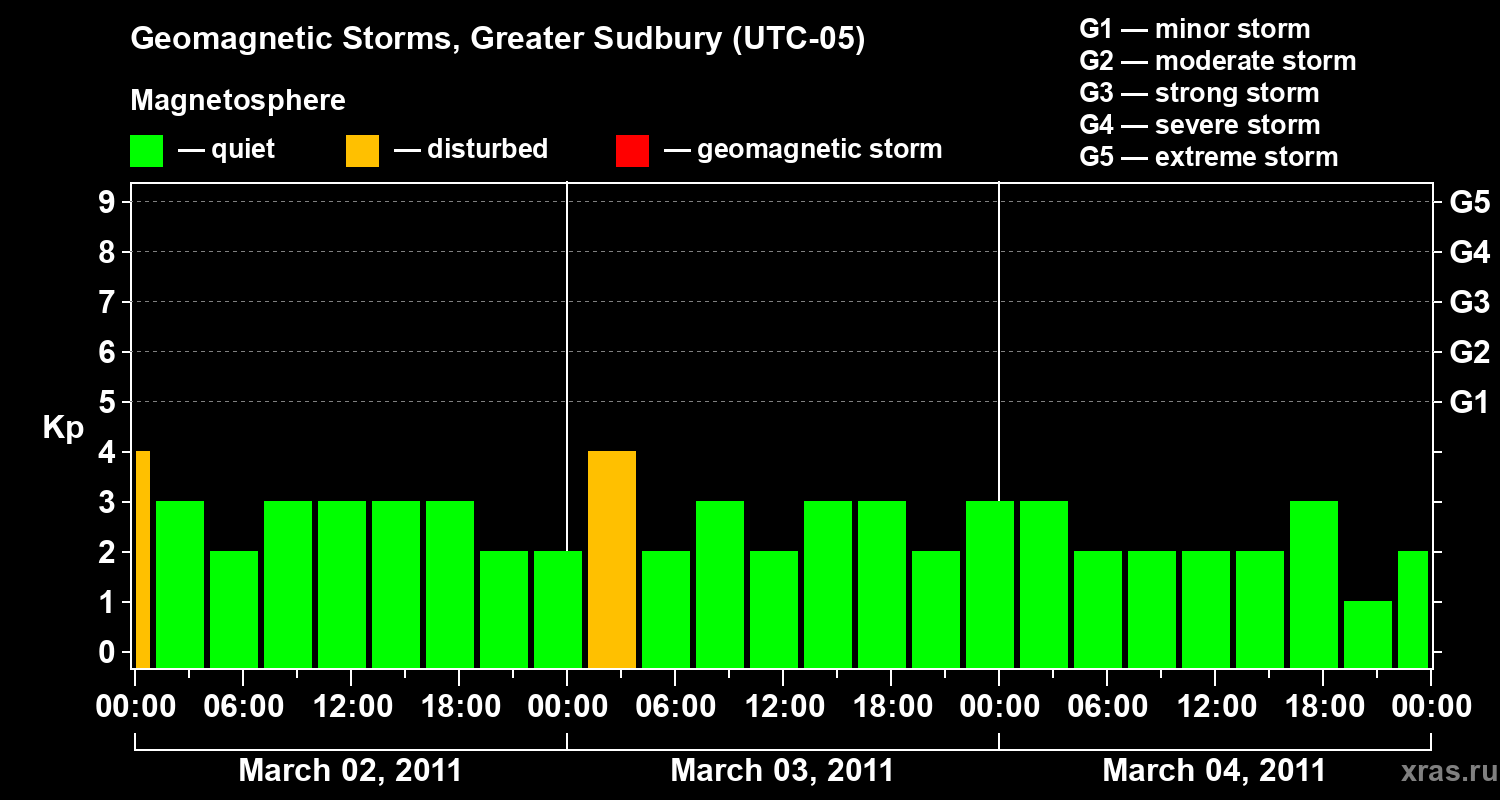 Geomagnetic storms in Greater Sudbury on Mar 04, 2011