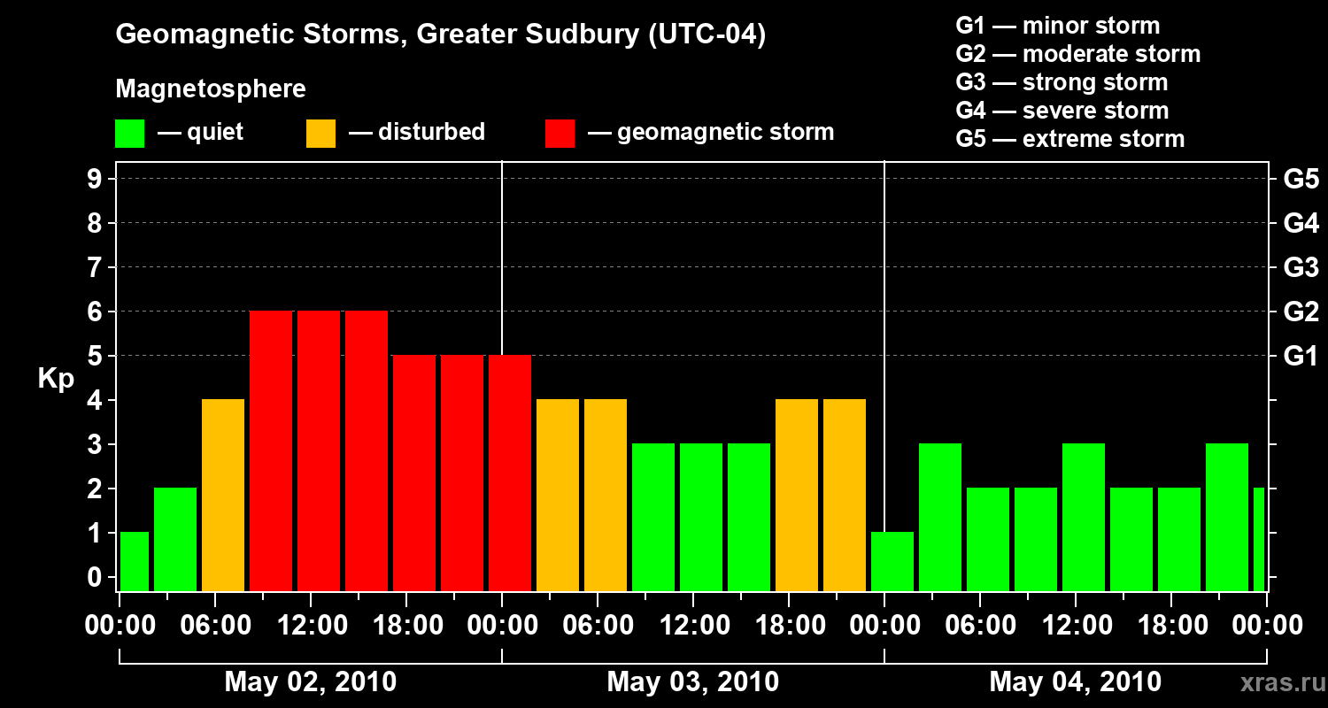 Geomagnetic storms in Greater Sudbury on May 04, 2010
