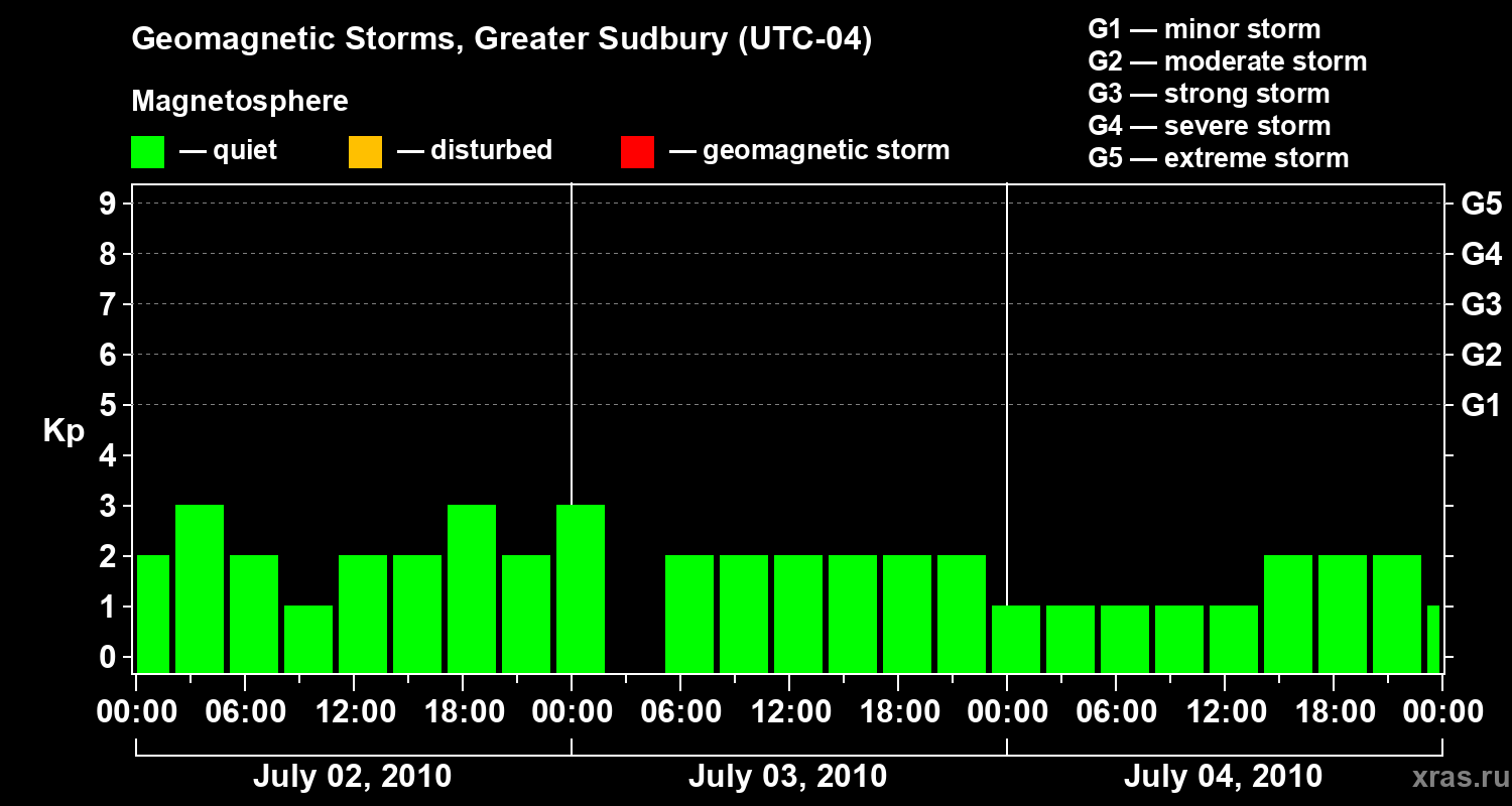 Geomagnetic storms in Greater Sudbury — Jul 04, 2010