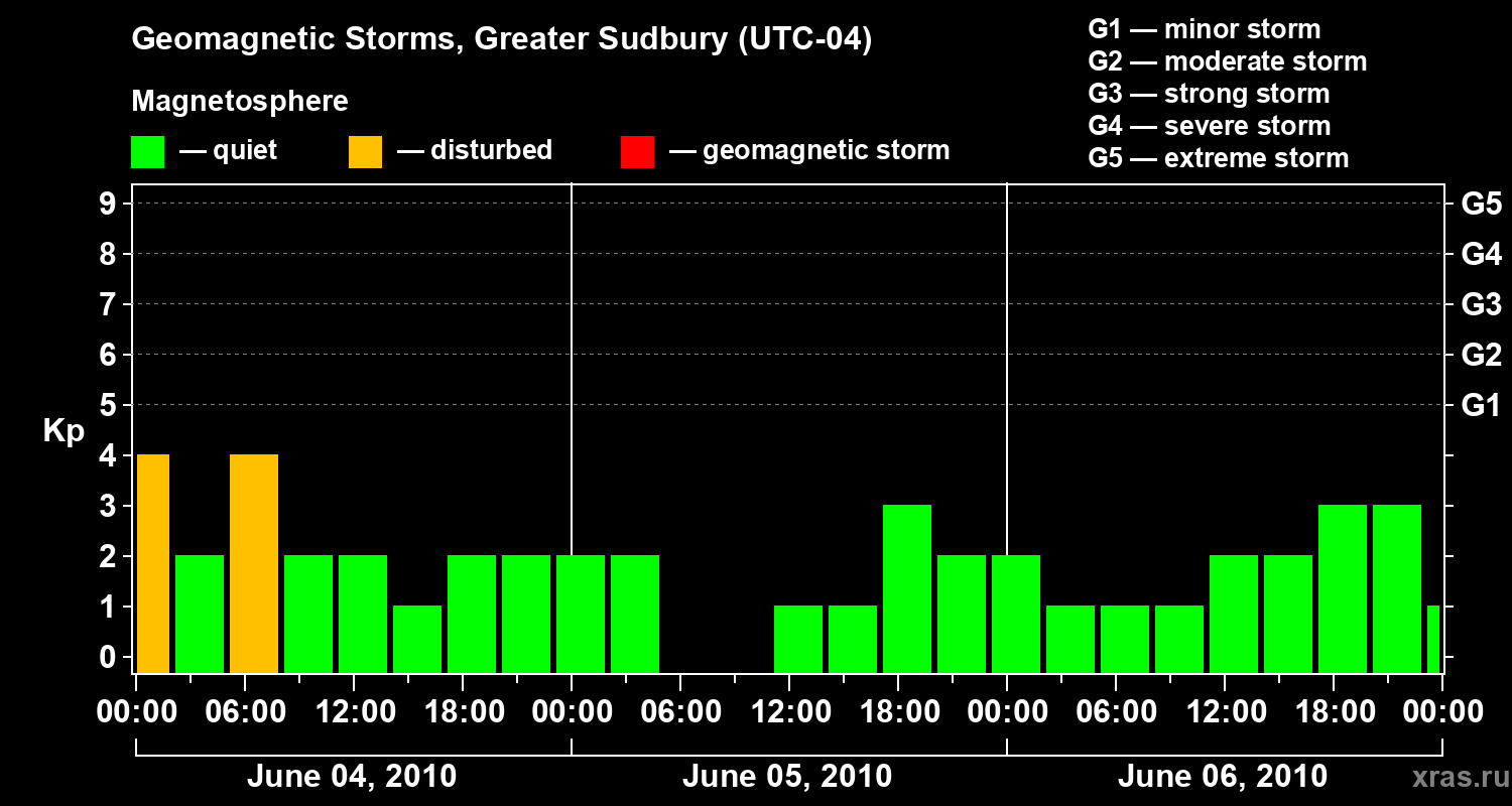 Geomagnetic storms in Greater Sudbury on Jun 06, 2010