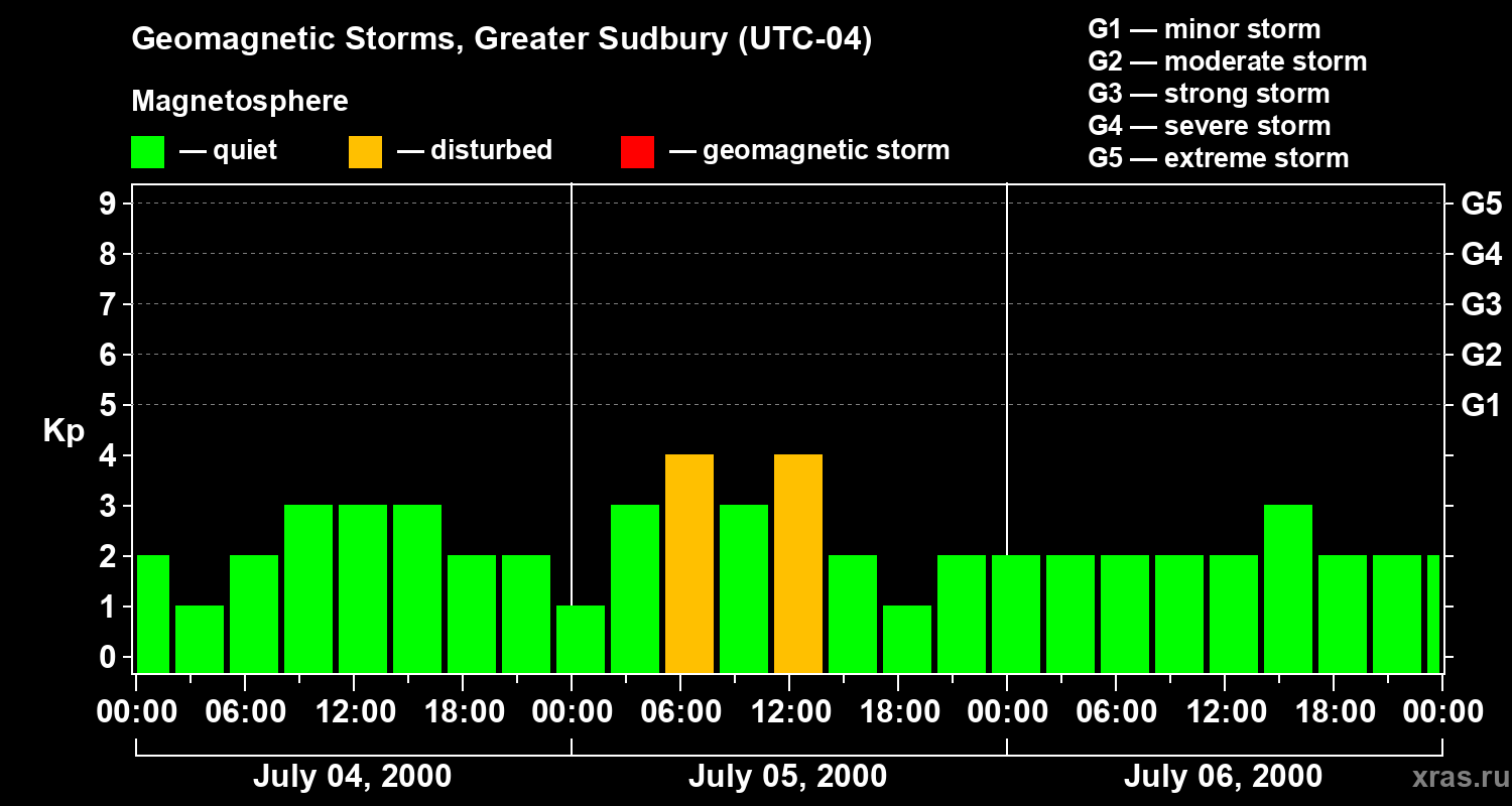 Geomagnetic storms in Greater Sudbury on Jul 06, 2000