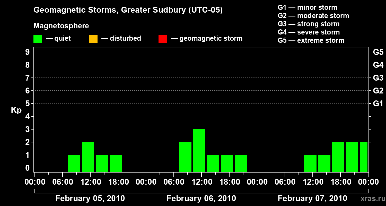 Geomagnetic storms in Greater Sudbury on Feb 07, 2010