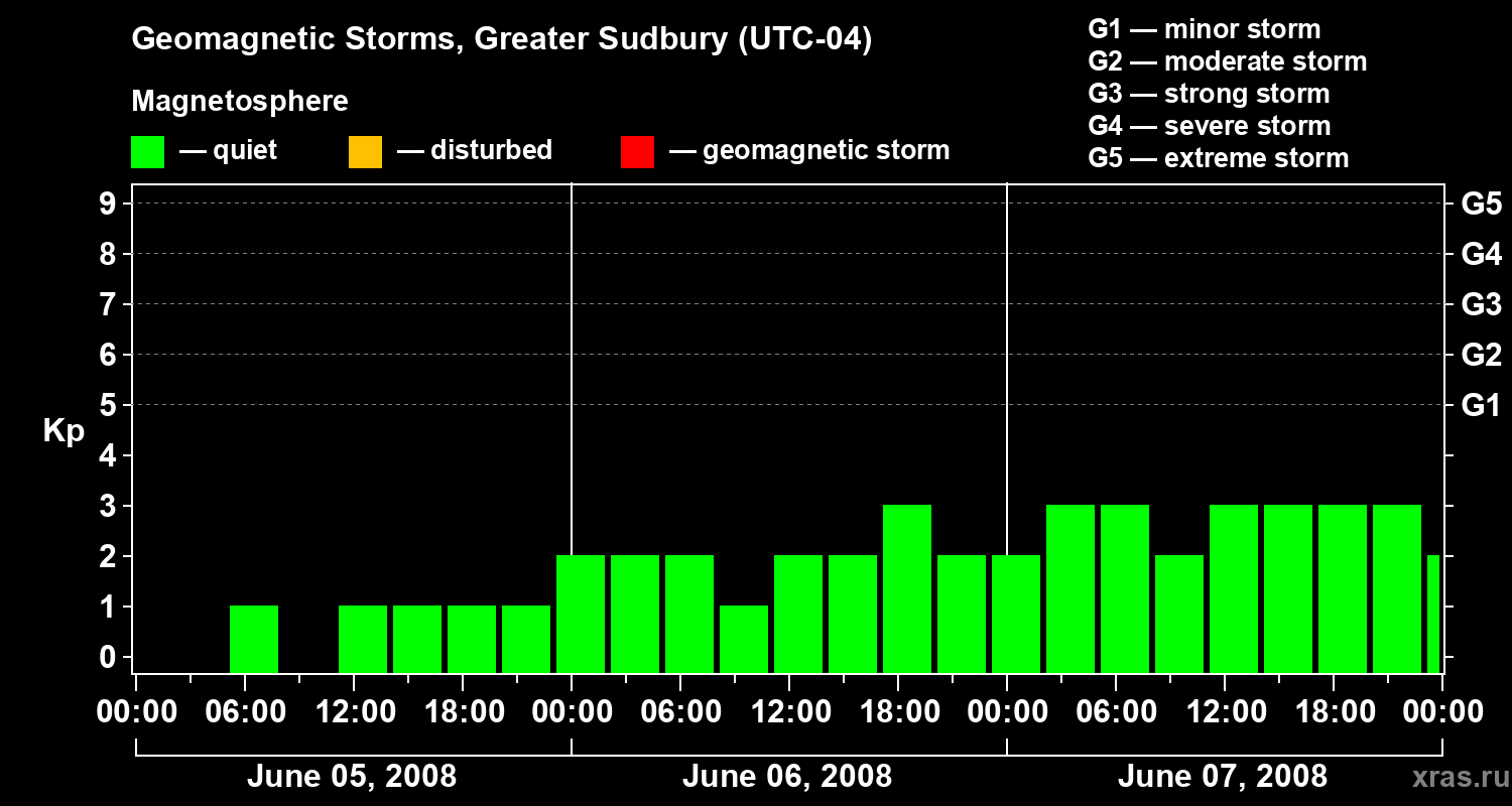 Geomagnetic storms in Greater Sudbury — Jun 07, 2008