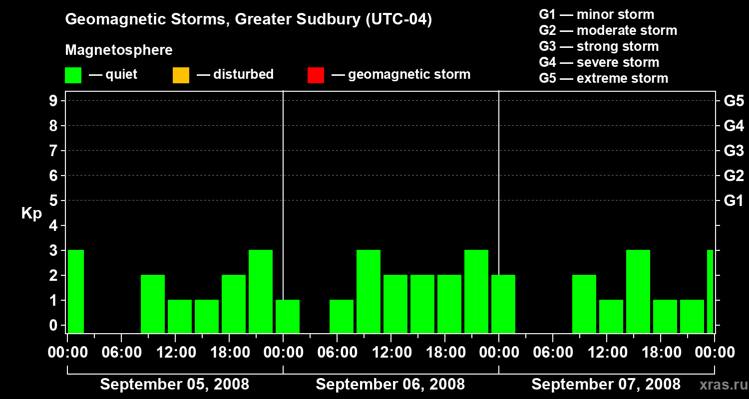 Geomagnetic storms in Greater Sudbury on Sep 07, 2008