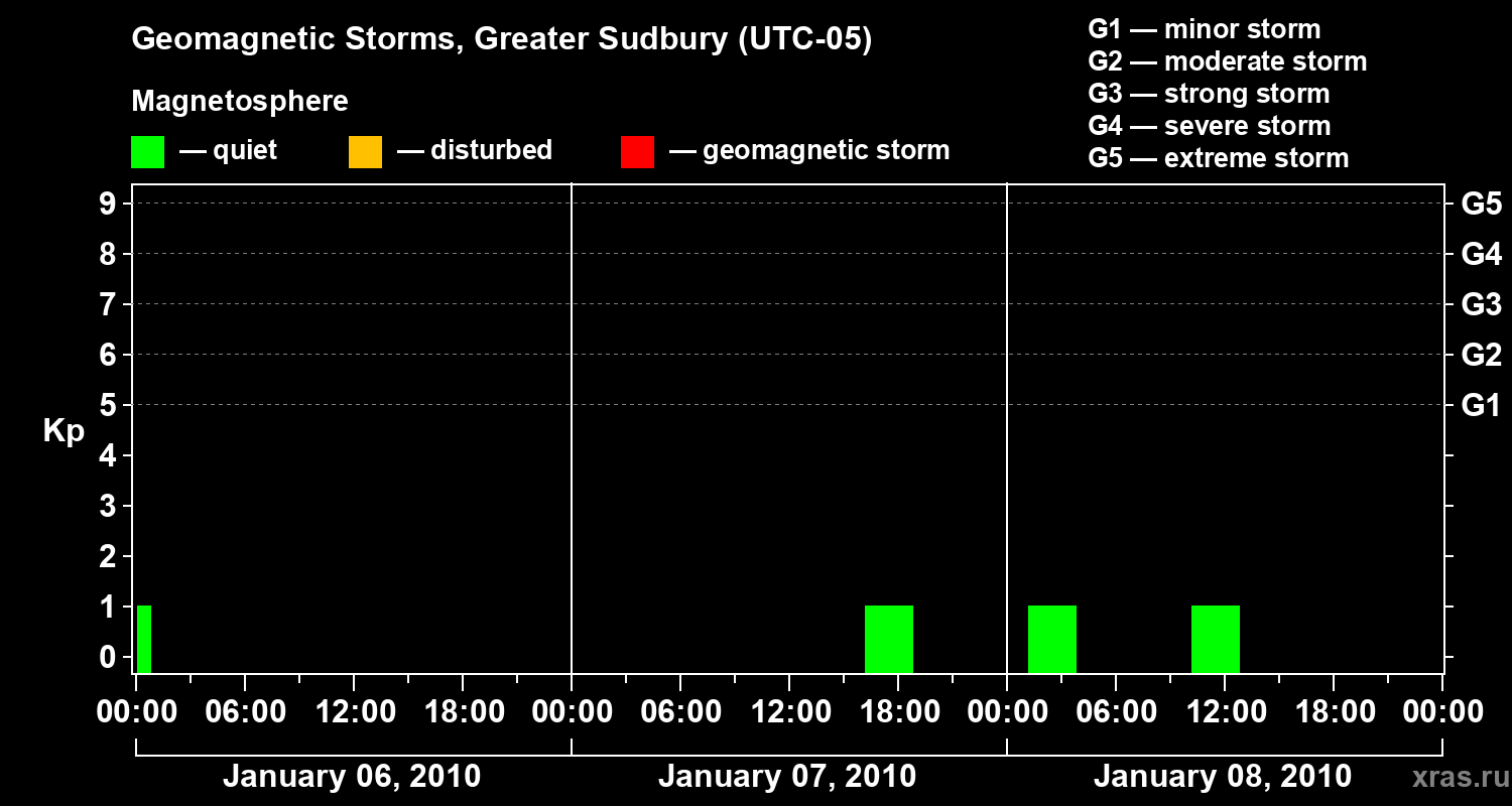 Geomagnetic storms in Greater Sudbury on Jan 08, 2010