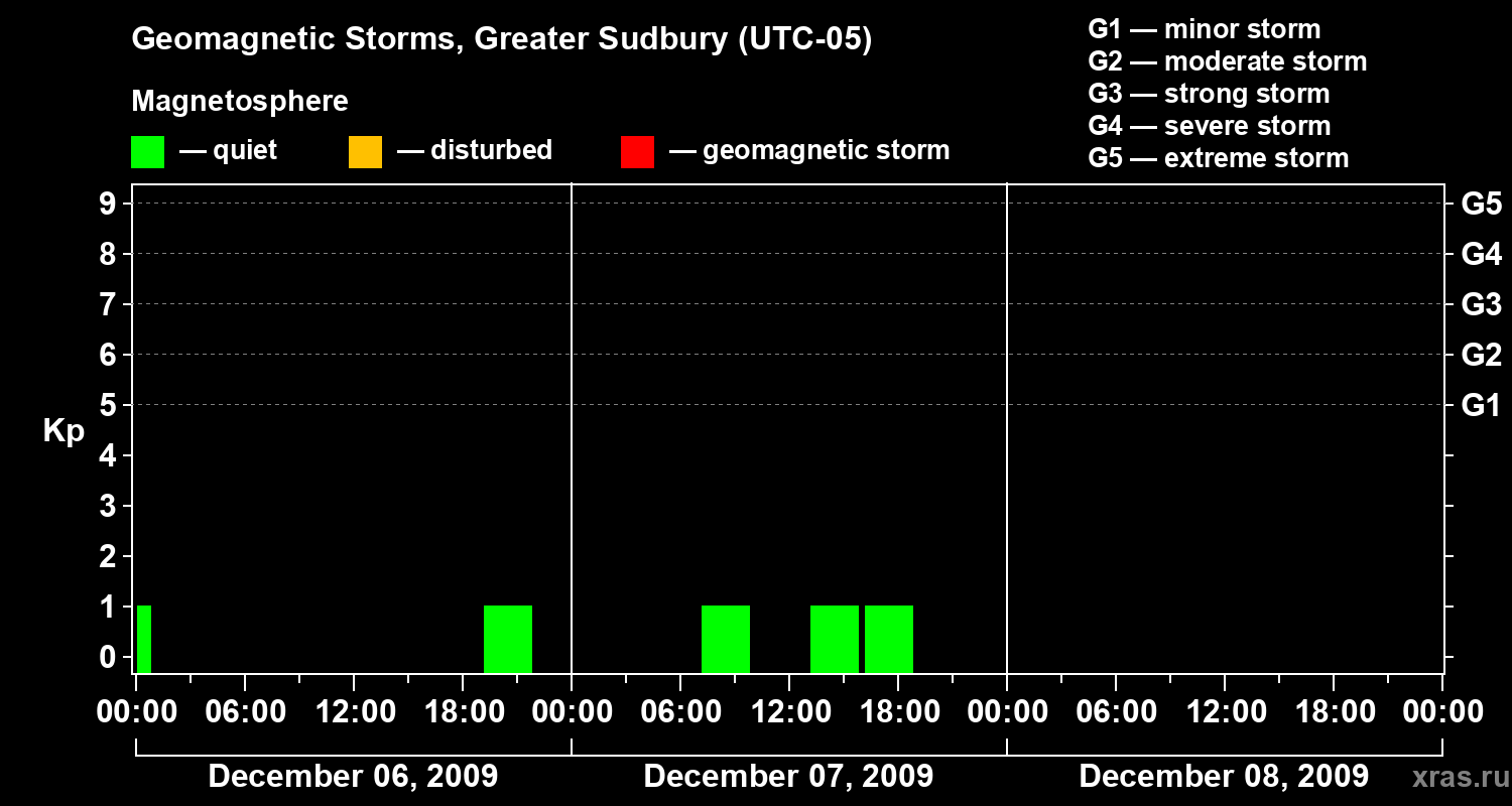 Geomagnetic storms in Greater Sudbury on Dec 08, 2009