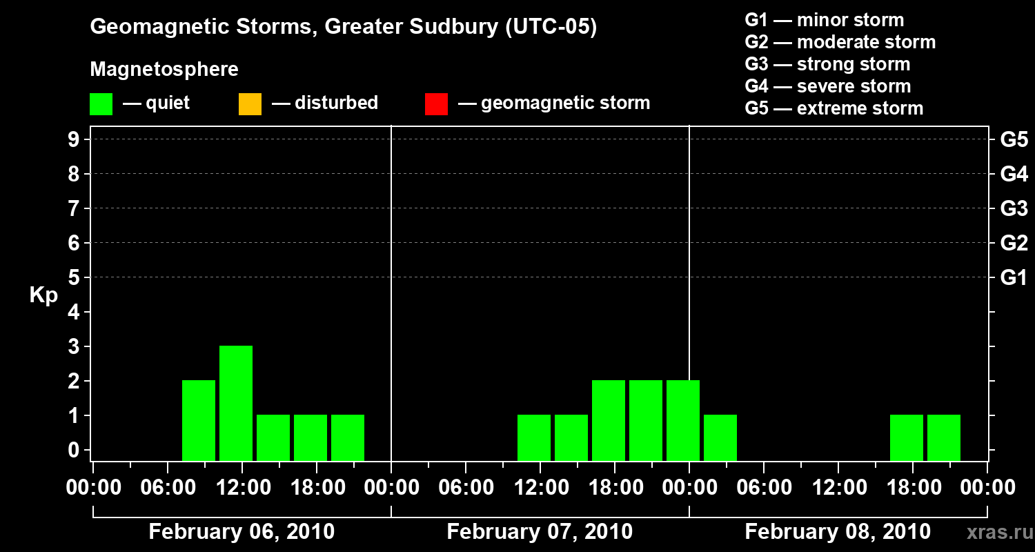 Geomagnetic storms in Greater Sudbury on Feb 08, 2010