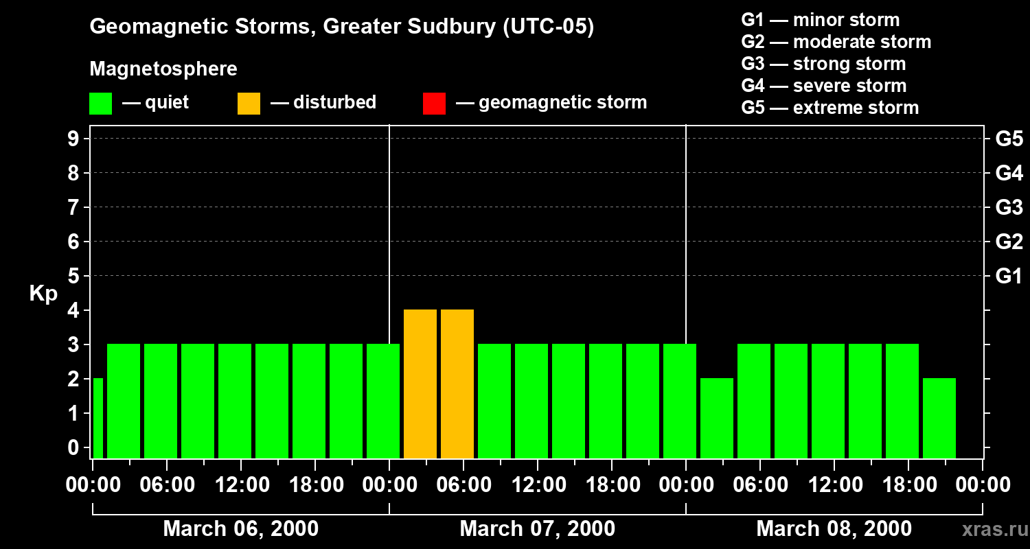 Geomagnetic storms in Greater Sudbury — Mar 08, 2000