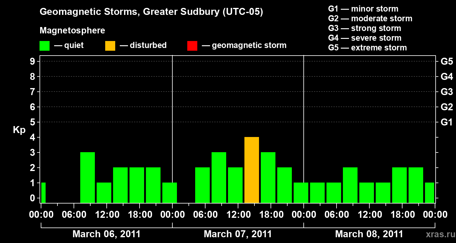 Geomagnetic storms in Greater Sudbury on Mar 08, 2011
