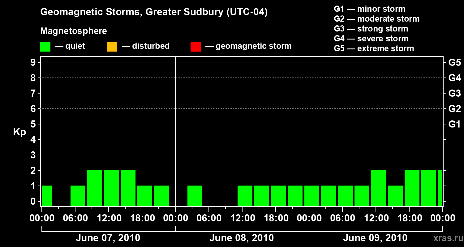 Geomagnetic storms in Greater Sudbury on Jun 09, 2010