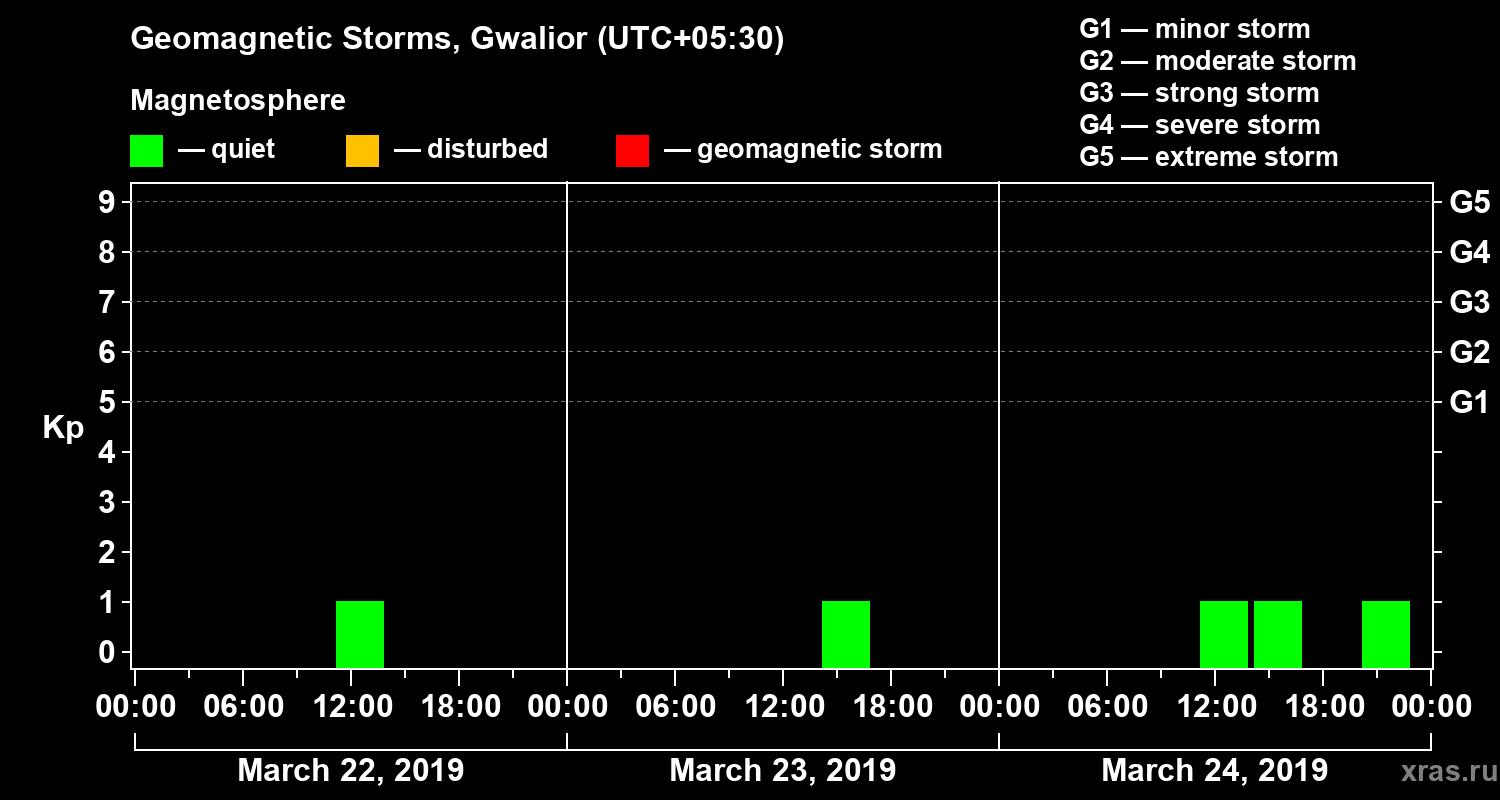 Geomagnetic storms in Gwalior — Mar 24, 2019