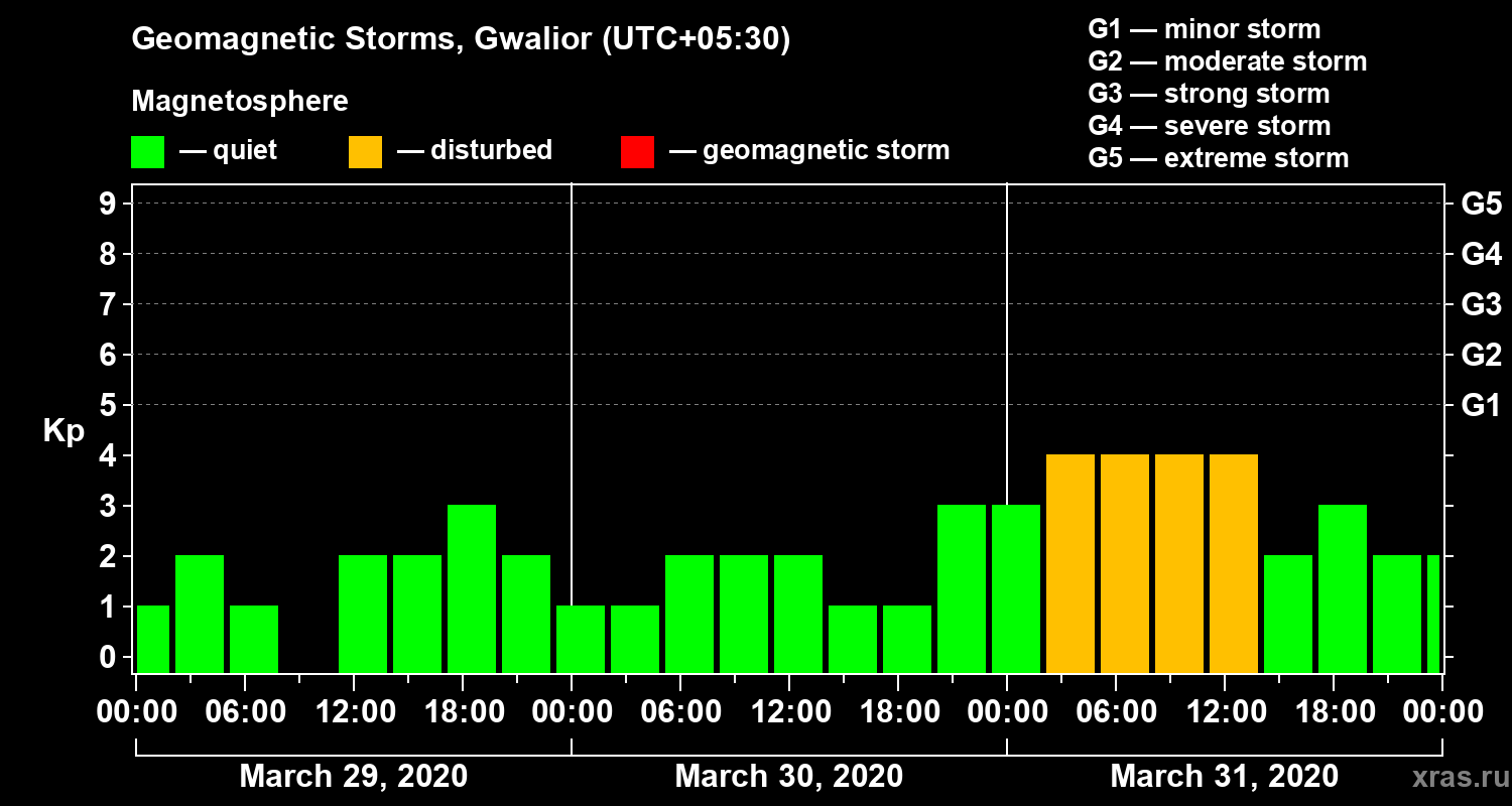 Geomagnetic storms in Gwalior — Mar 31, 2020