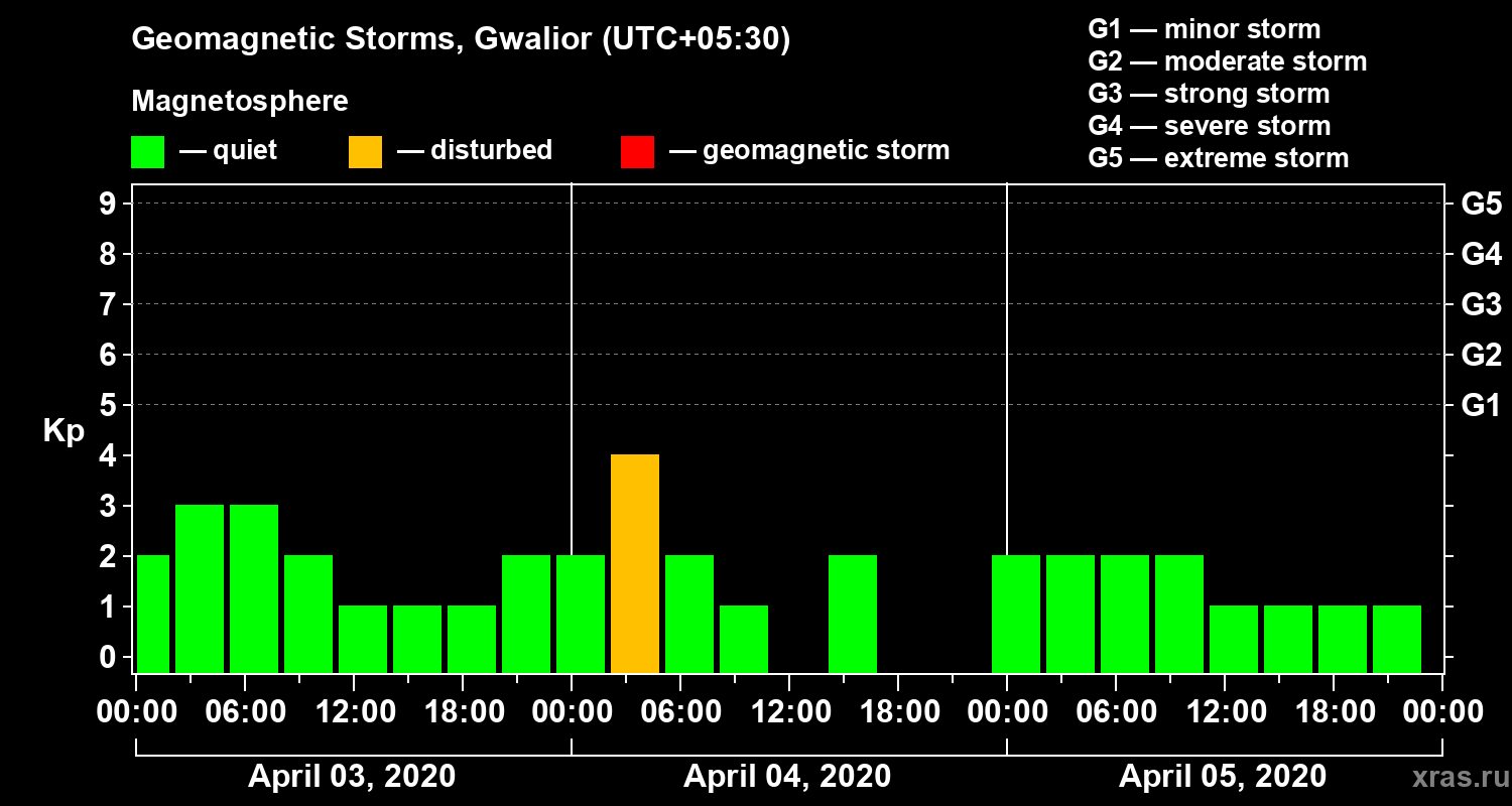 Geomagnetic storms in Gwalior — Apr 05, 2020