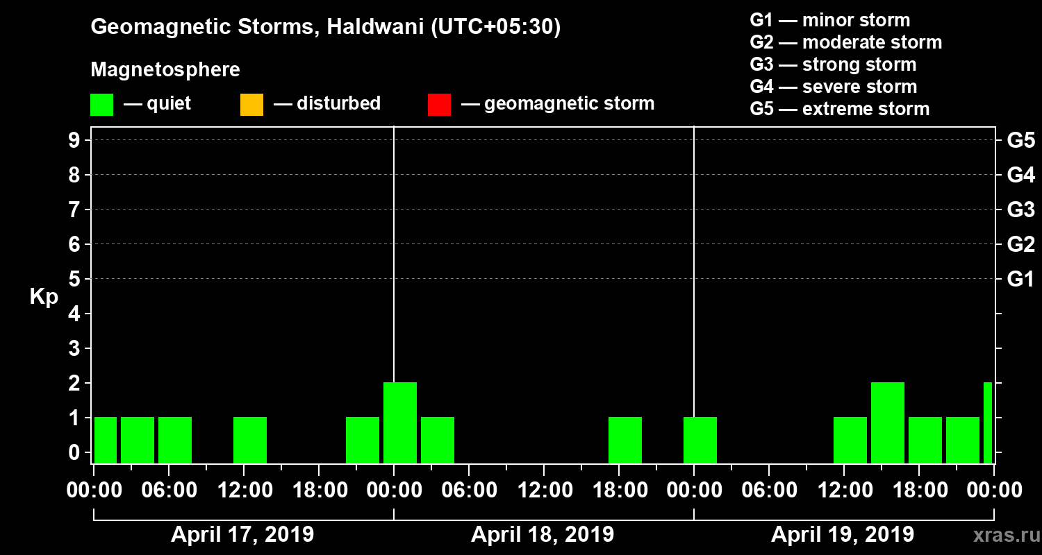 Geomagnetic storms in Haldwani — Apr 19, 2019