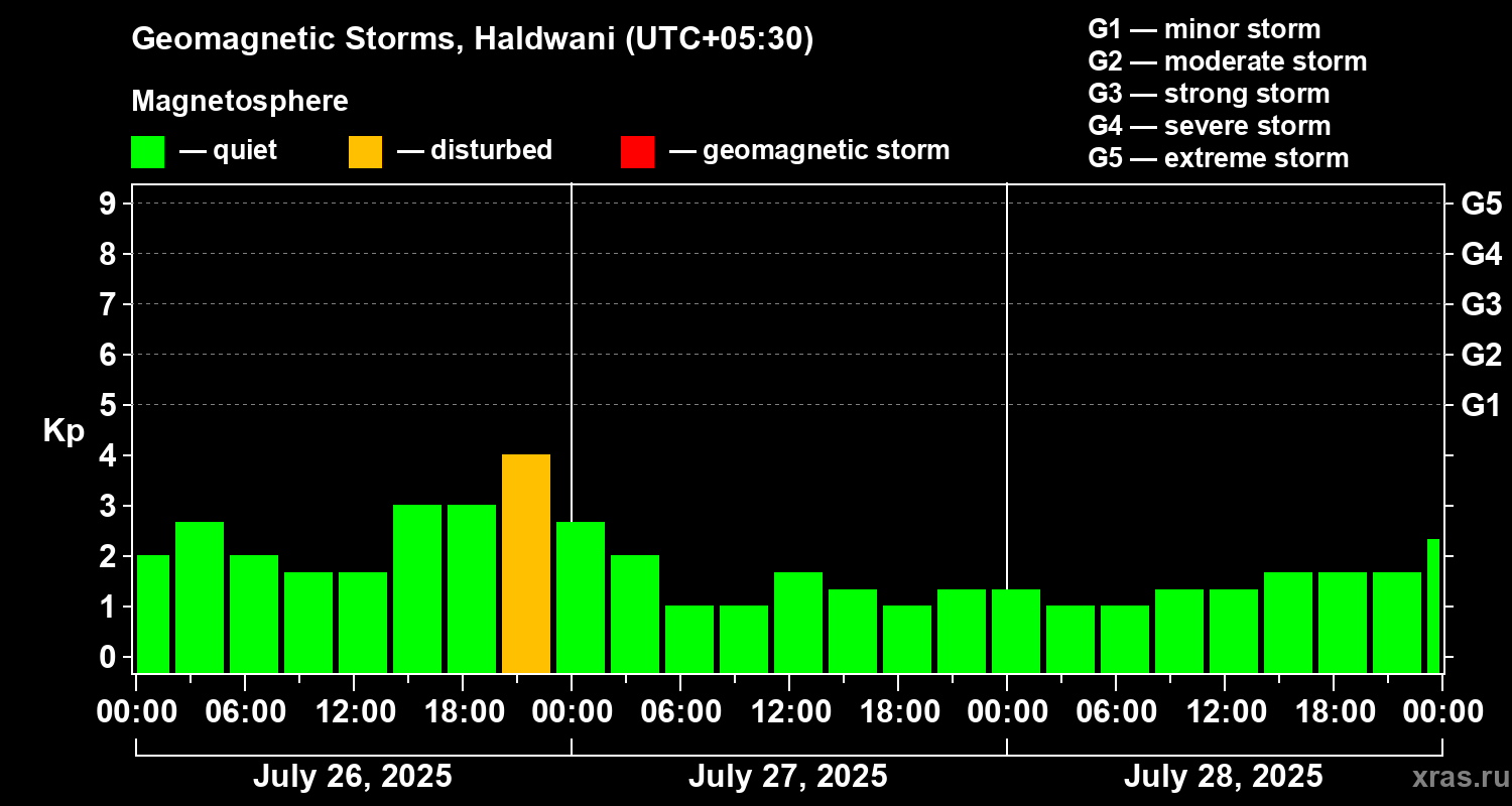 Geomagnetic storms in Haldwani — Jul 28, 2025