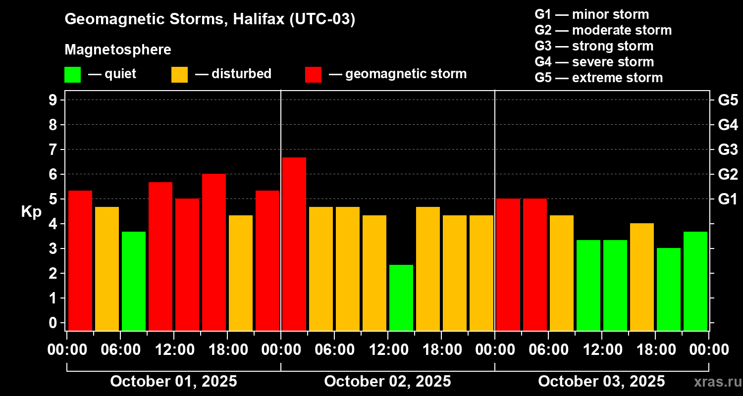 Geomagnetic storms in Halifax — Oct 03, 2025