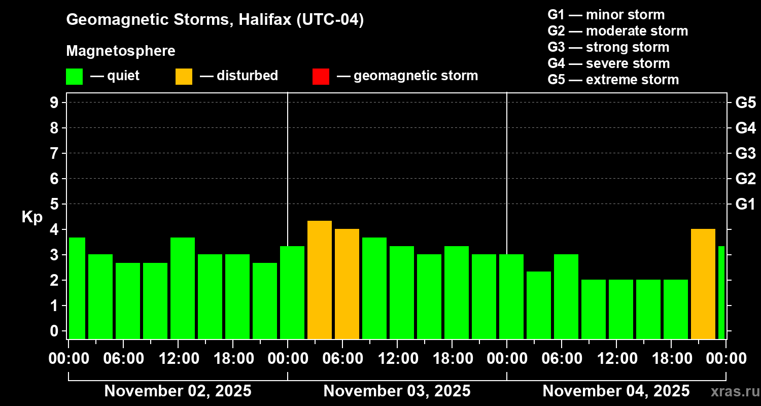 Geomagnetic storms in Halifax — Nov 04, 2025