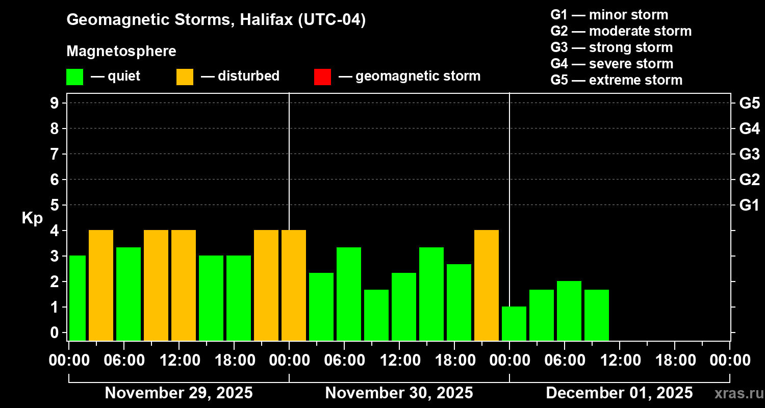 Geomagnetic storms in Halifax on Dec 01, 2025