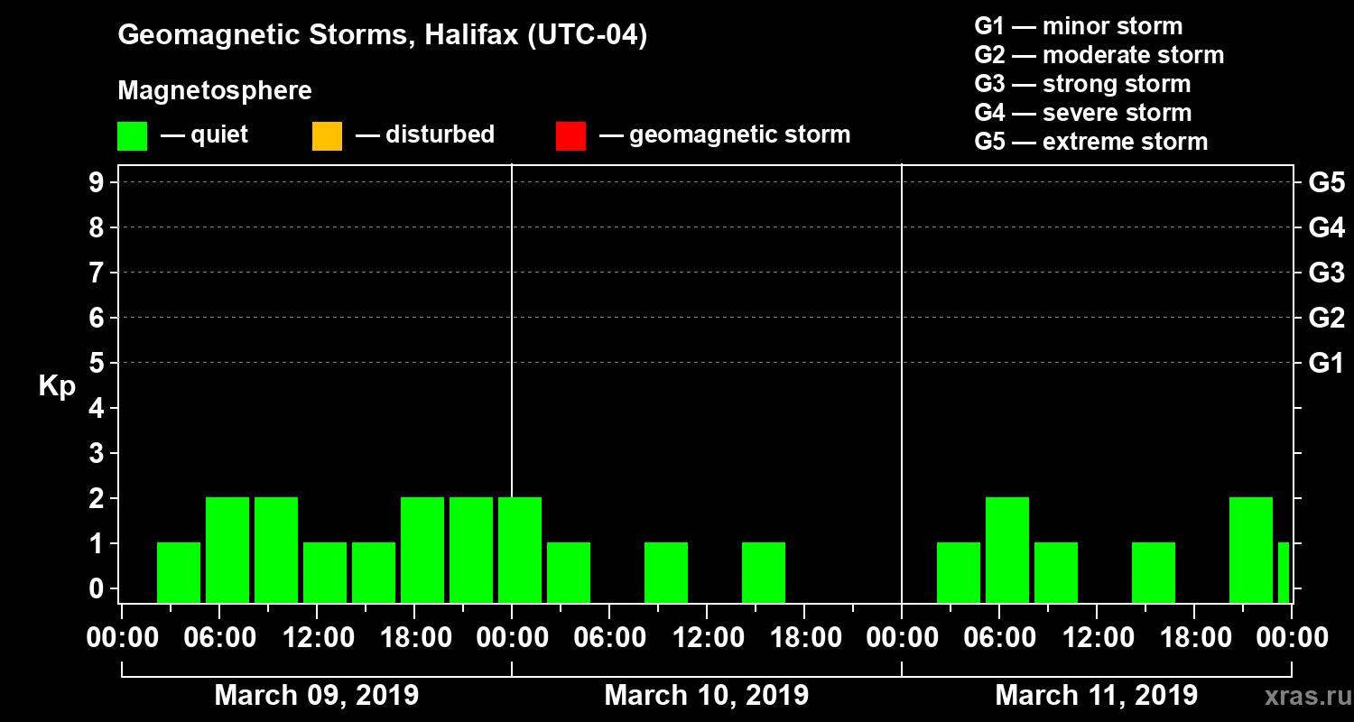 Geomagnetic storms in Halifax in March 2019