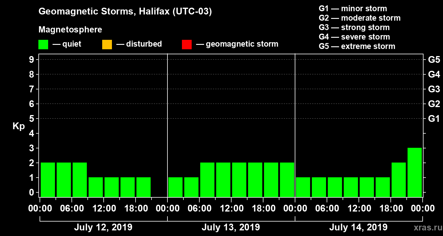 Geomagnetic storms in Halifax on Jul 14, 2019