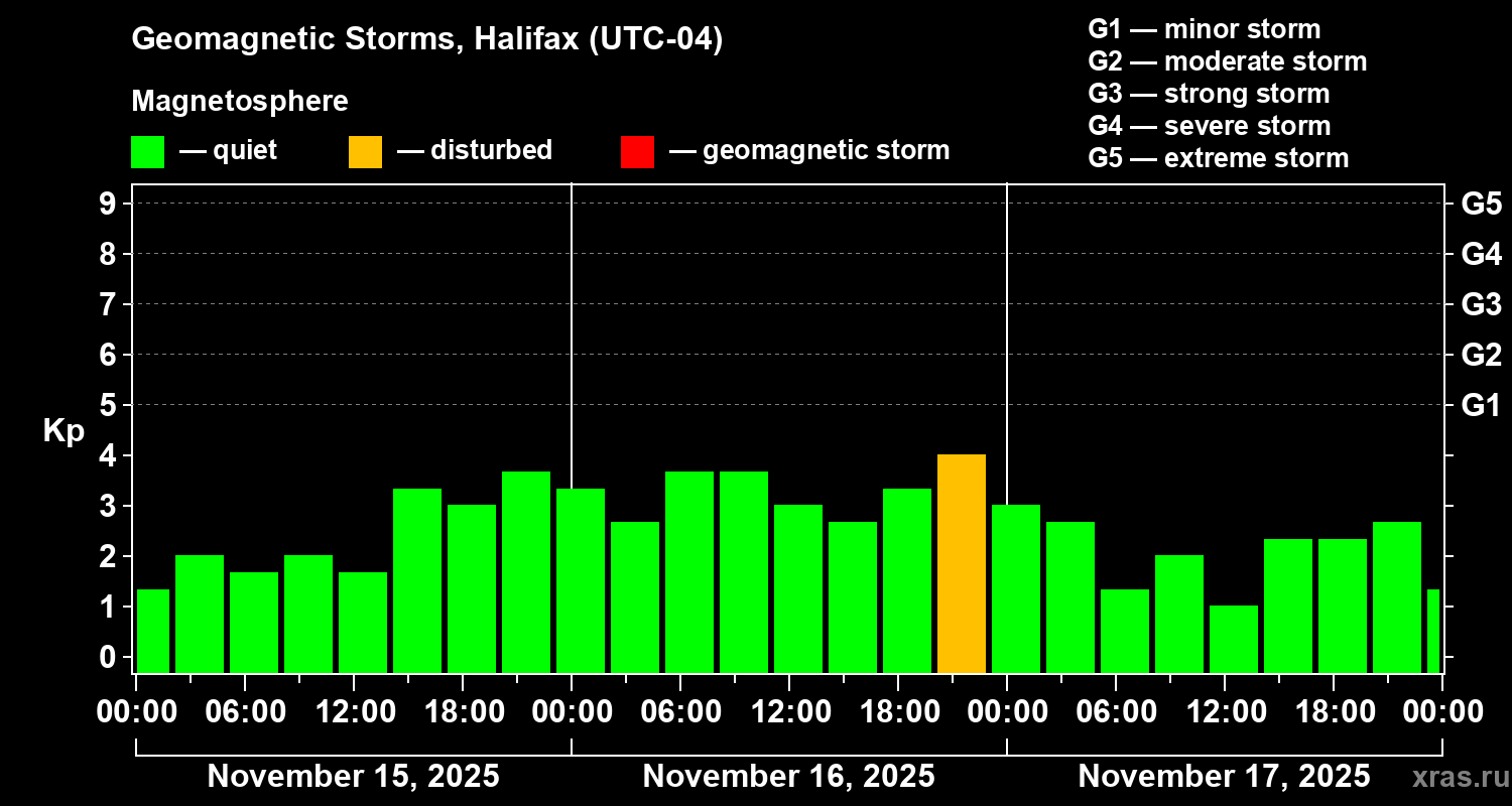 Geomagnetic storms in Halifax on Nov 17, 2025