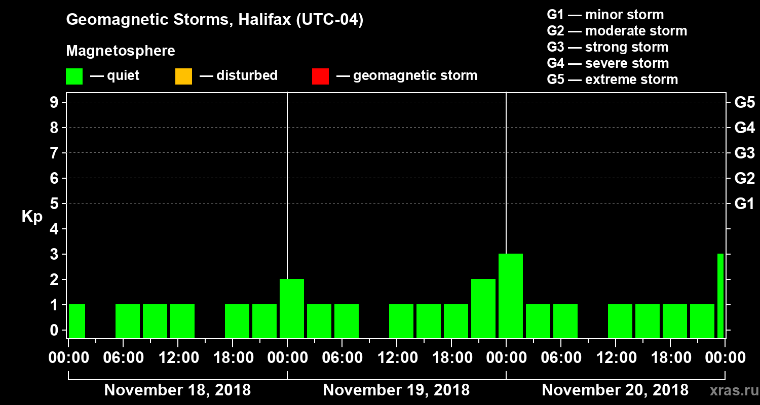 Geomagnetic storms in Halifax on Nov 20, 2018