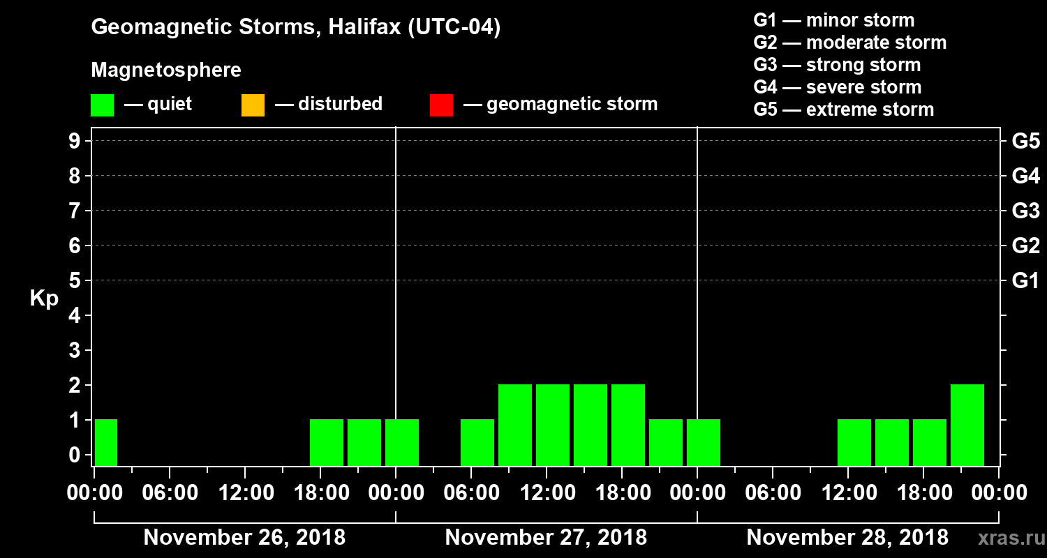 Geomagnetic storms in Halifax on Nov 28, 2018