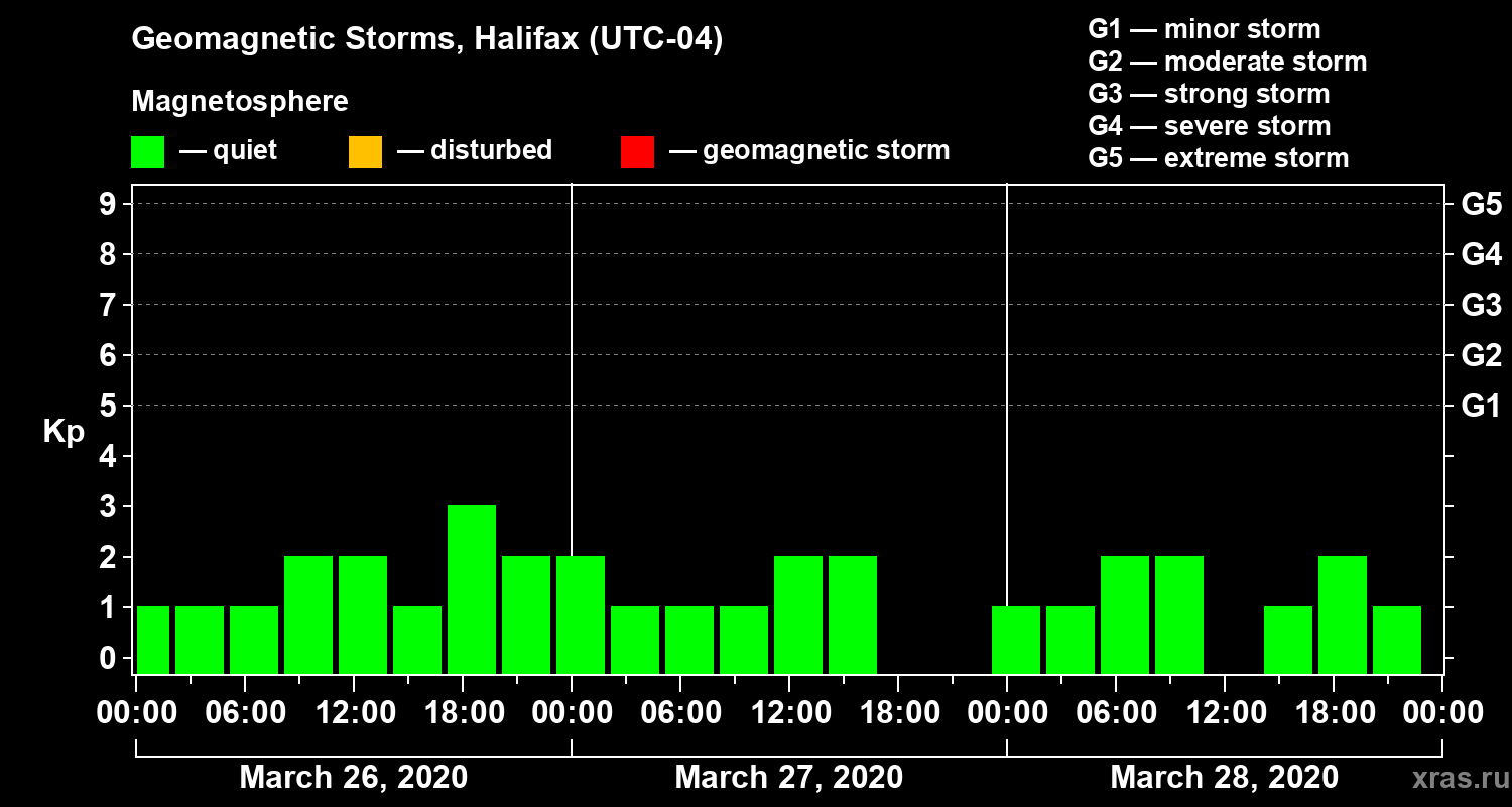 Geomagnetic storms in Halifax on Mar 28, 2020