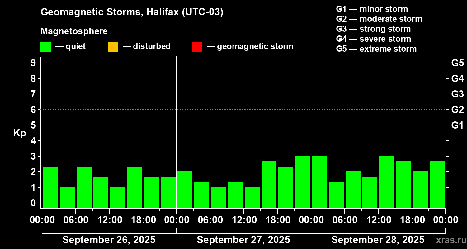 Geomagnetic storms in Halifax — Sep 28, 2025