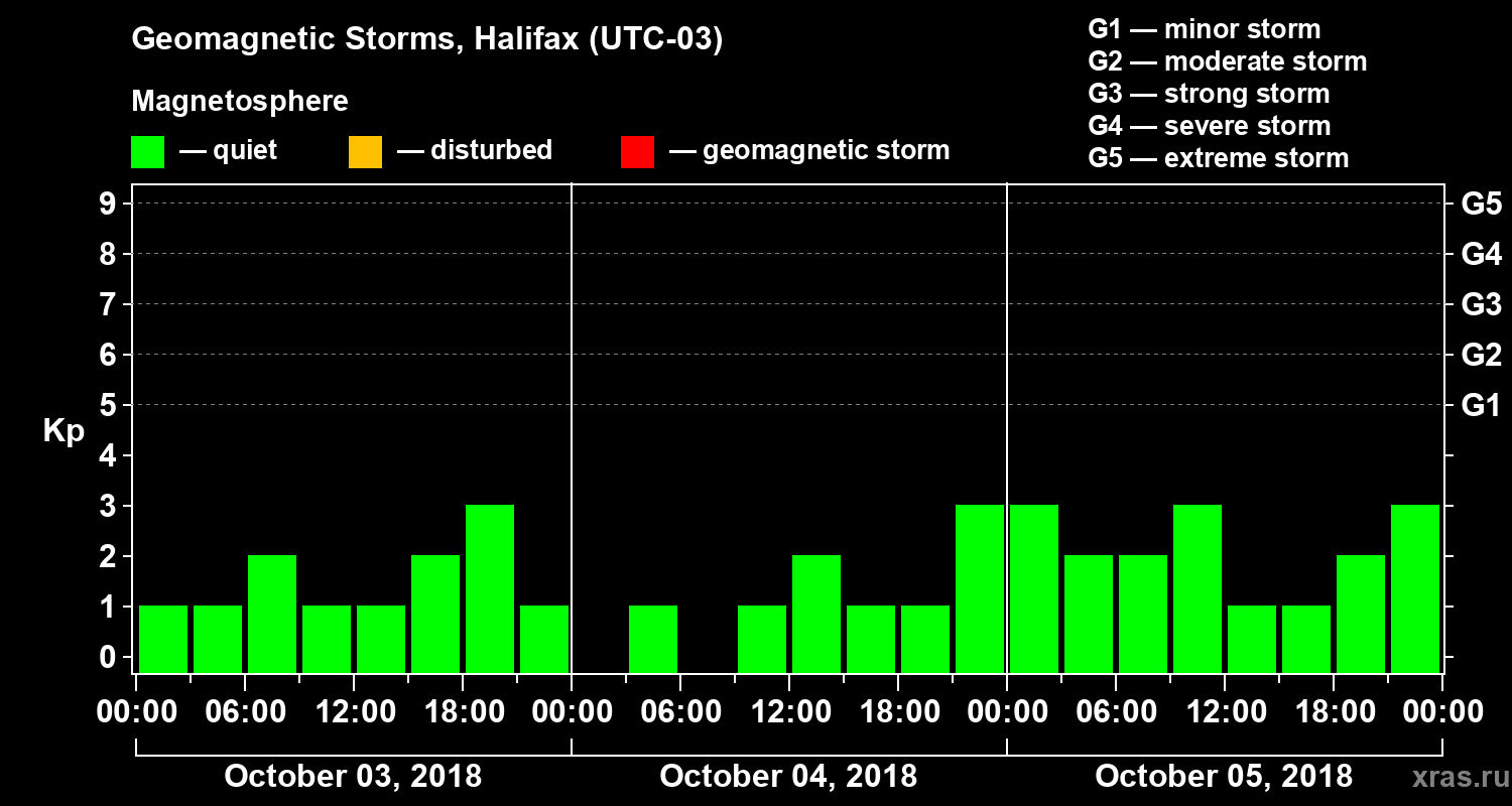 Geomagnetic storms in Halifax on Oct 05, 2018