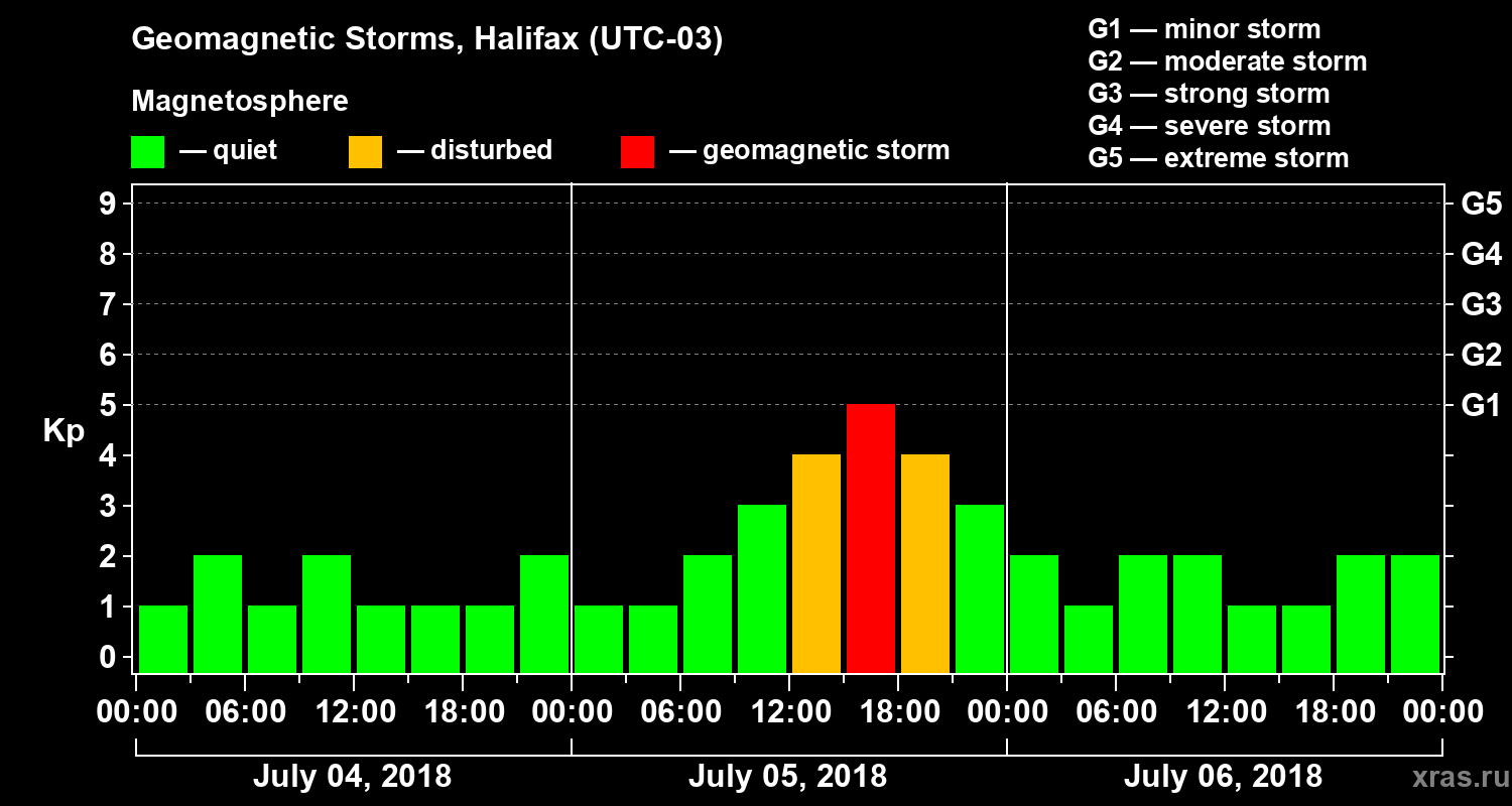 Geomagnetic storms in Halifax on Jul 06, 2018