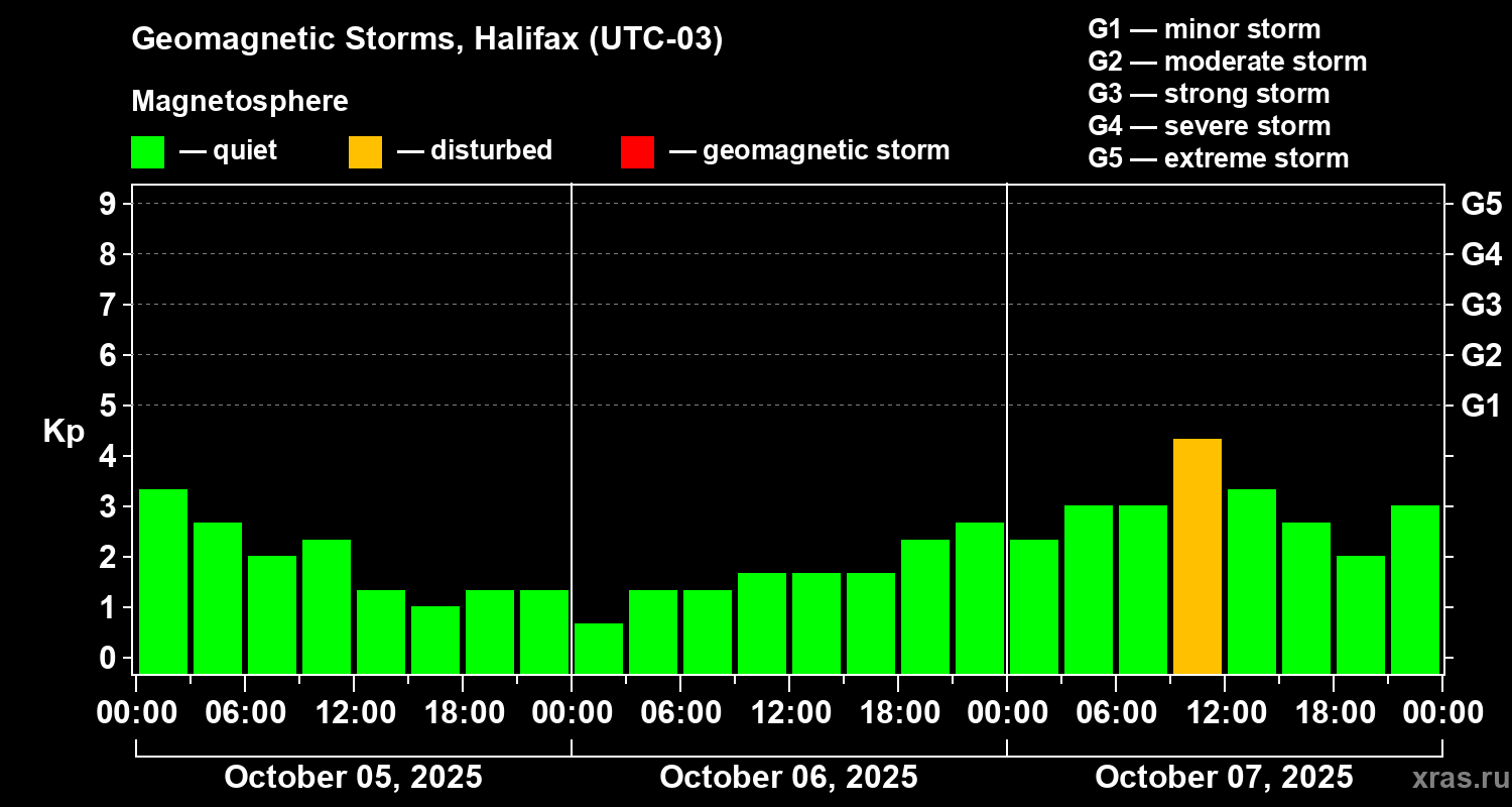 Geomagnetic storms in Halifax — Oct 07, 2025