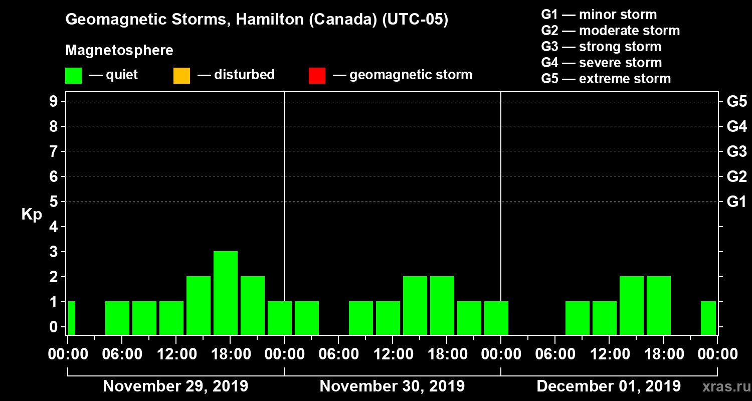 Geomagnetic storms in Hamilton (Canada) — Dec 01, 2019