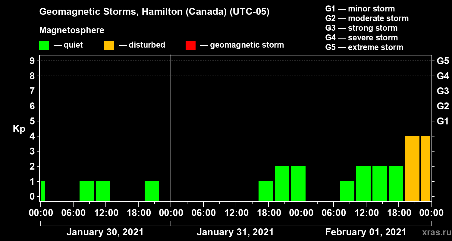 Geomagnetic storms in Hamilton (Canada) — Feb 01, 2021
