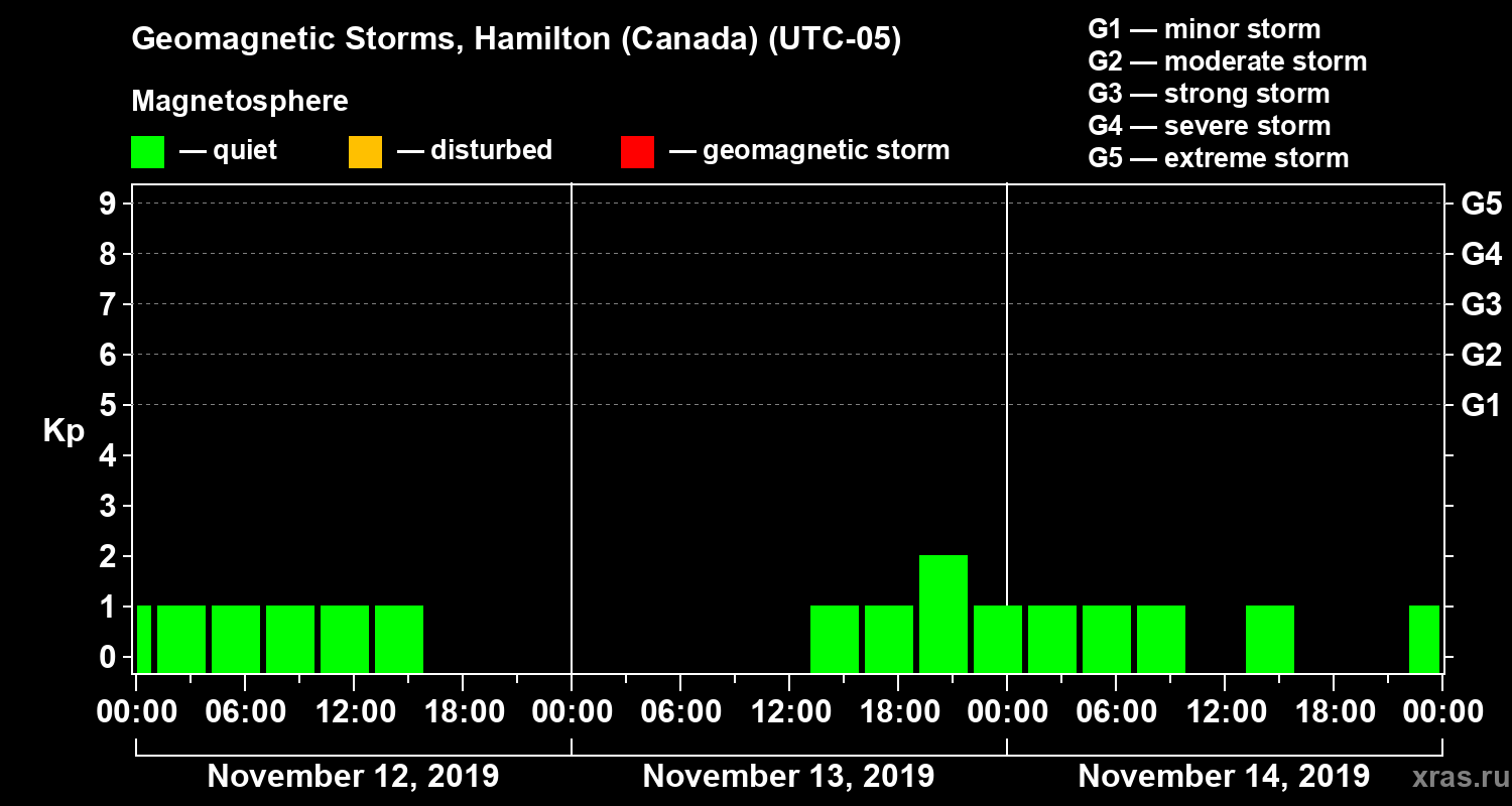 Geomagnetic storms in Hamilton (Canada) — Nov 14, 2019