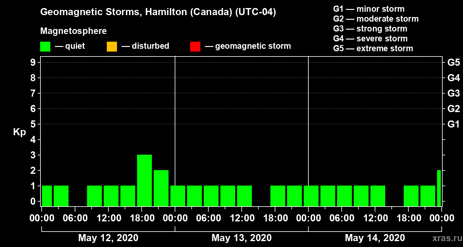 Geomagnetic storms in Hamilton (Canada) — May 14, 2020
