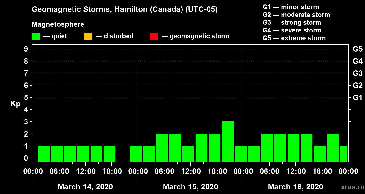 Geomagnetic storms in Hamilton (Canada) — Mar 16, 2020