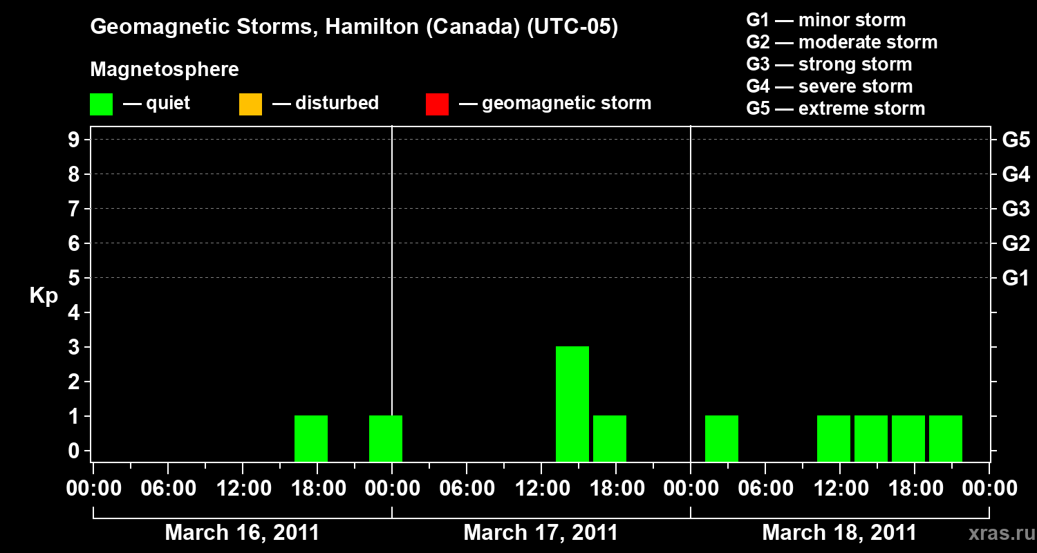 Geomagnetic storms in Hamilton (Canada) — Mar 18, 2011