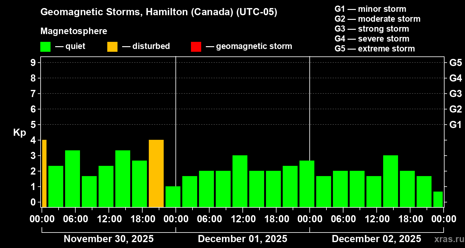 Geomagnetic storms in Hamilton (Canada) — Dec 02, 2025