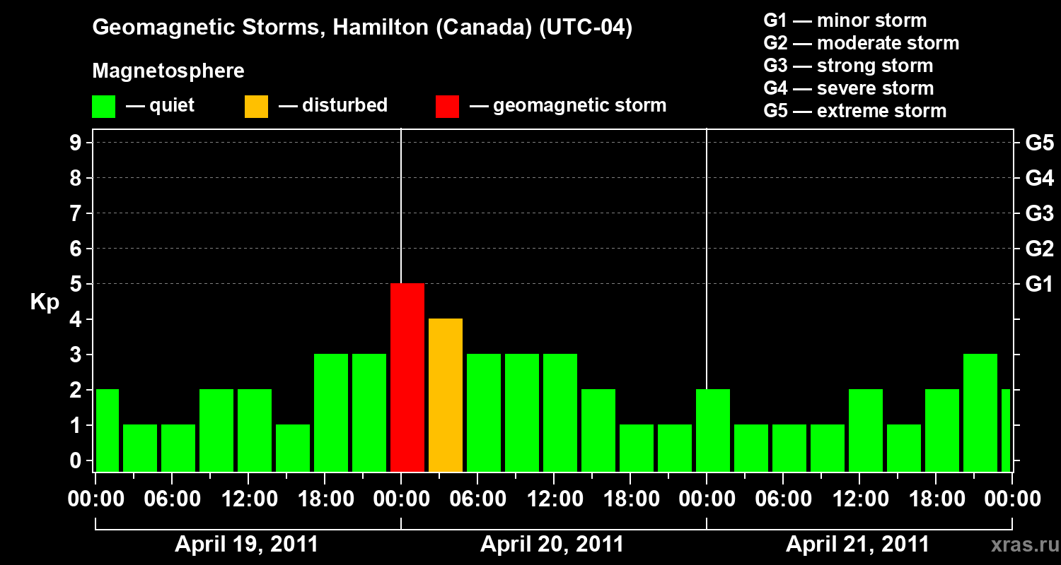 Geomagnetic storms in Hamilton (Canada) — Apr 21, 2011